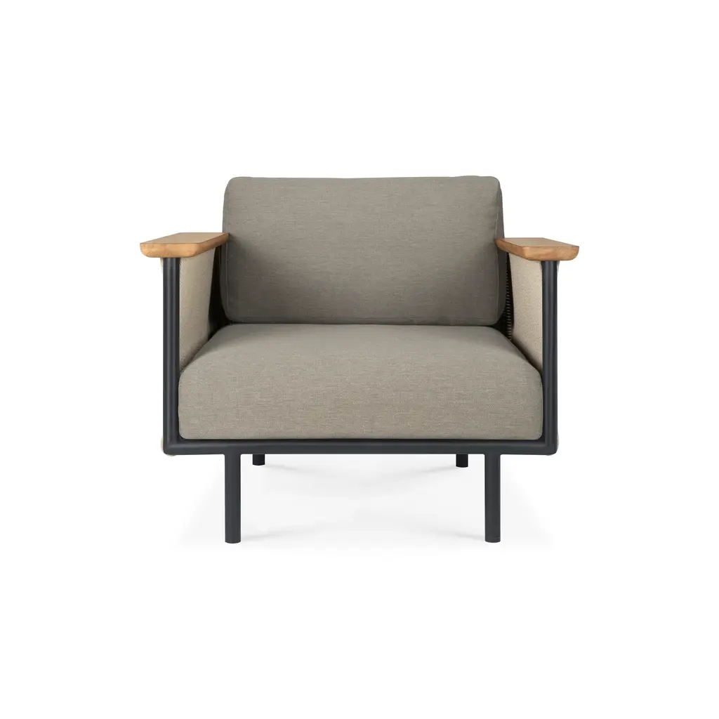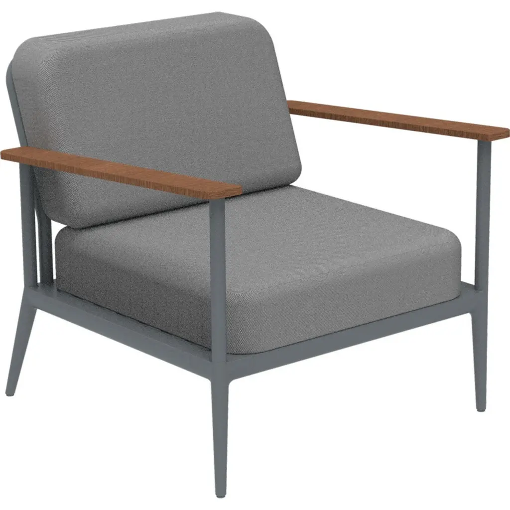 Nature grey longue chair by MOWEE.Dimensions: D85 x W83 x H81 cm (seat height 42 cm).Material: aluminum, upholstery and Iroko wood.Weight: 20 kg.Also available in different colors and finishes.An unmistakable collection for its beauty and robustness. A tribute to the Valencian manufacturing tradition as a challenge to innovation, making it sustainable and durable. A fresher version, Nature. It presents touches of natural and sustainable wood, which gives warmth and comfort, and makes it a unique collection.Möwee is part of the work, effort and commitment of Gaviota, a leading company in the outdoor sector. It was set up as an independent venture to broaden horizons in the outdoor furniture world, with its own distinctive character and way of doing things. Freshness, simplicity, quality and design are at the heart of its DNA.