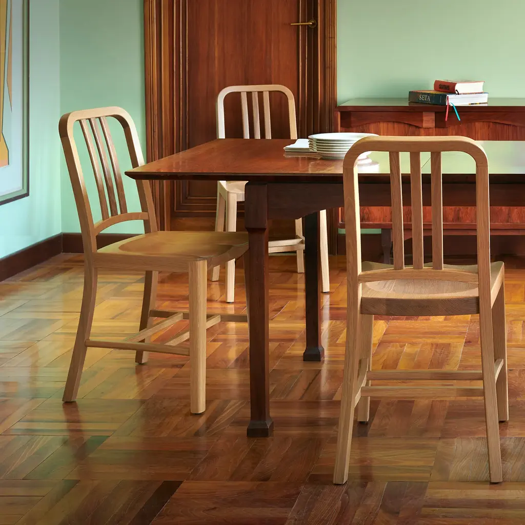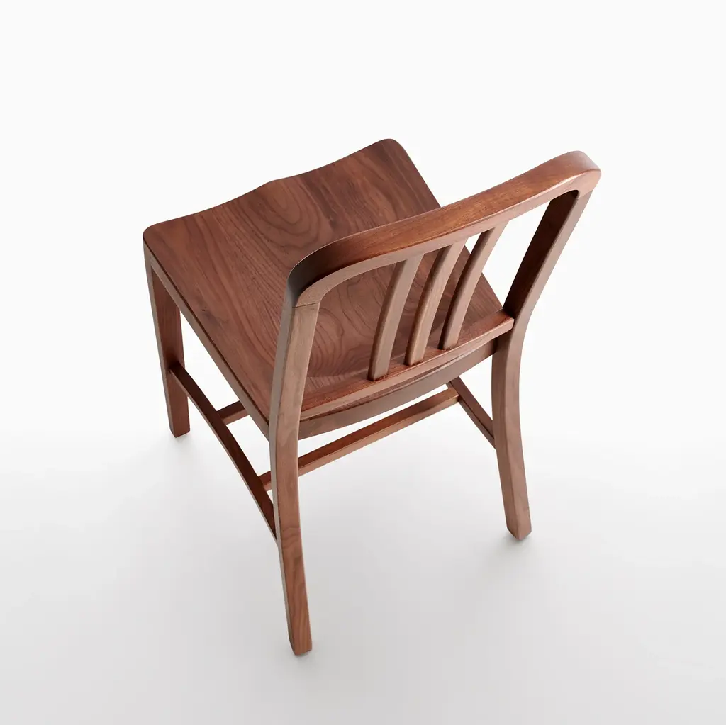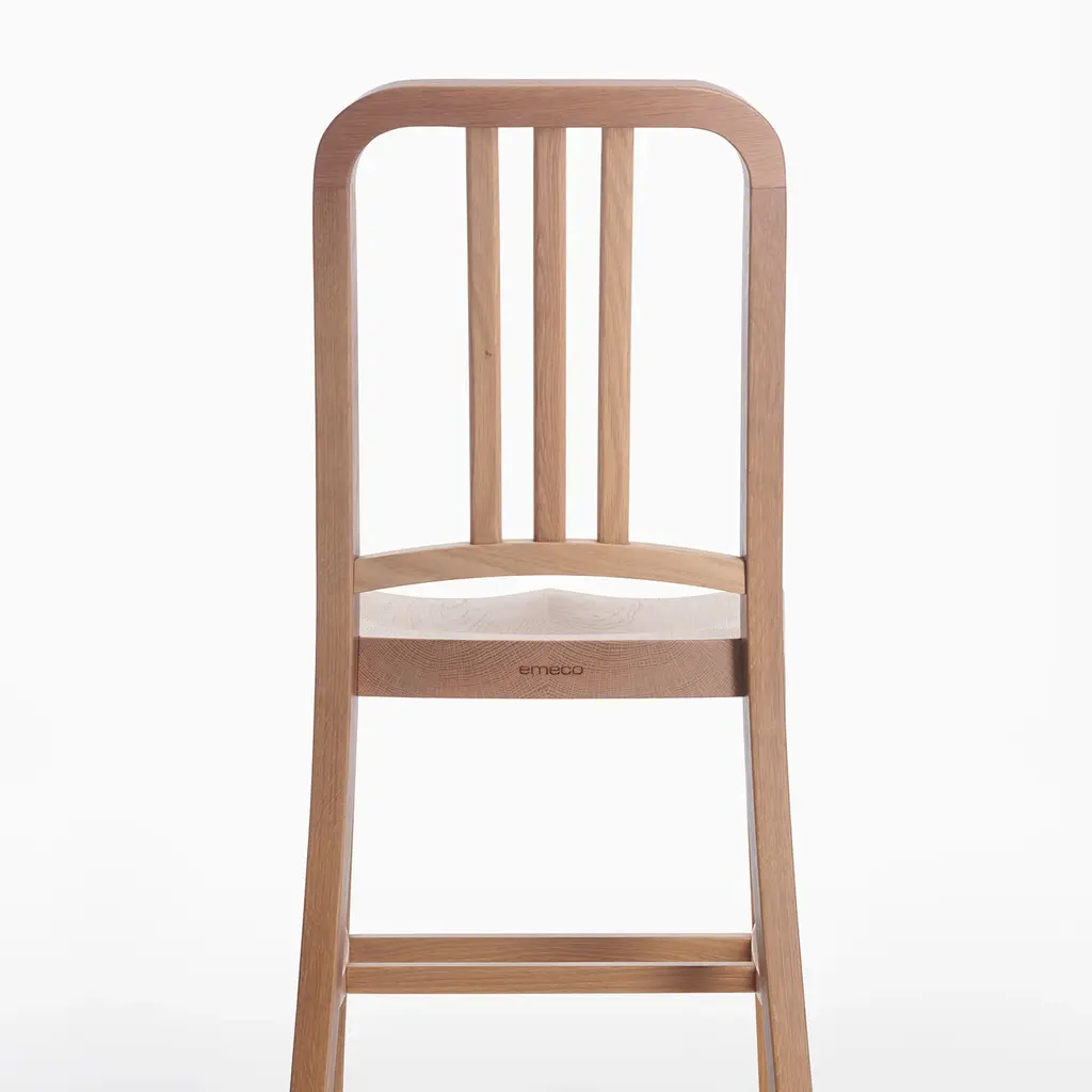 Navy Wood by Emeco, 2019 Our iconic Navy Chair shape, in the warmth of wood. Available in three solid wood finishes - all locally sourced from sustainably managed forests and handcrafted in collaboration with our Amish neighbors in Lancaster, Pennsylvania. Standard glides: all-round soft plastic TPU glides. Alternative glides available at an upcharge. Please note that wood is a natural material, with variations in color and grain pattern to be expected.