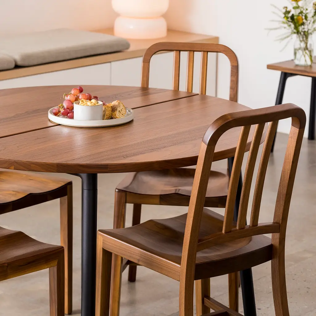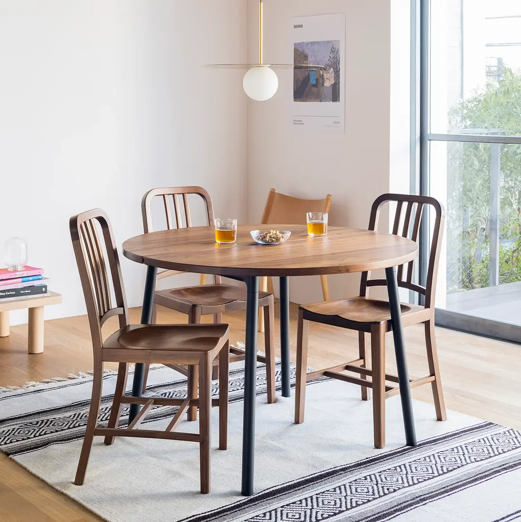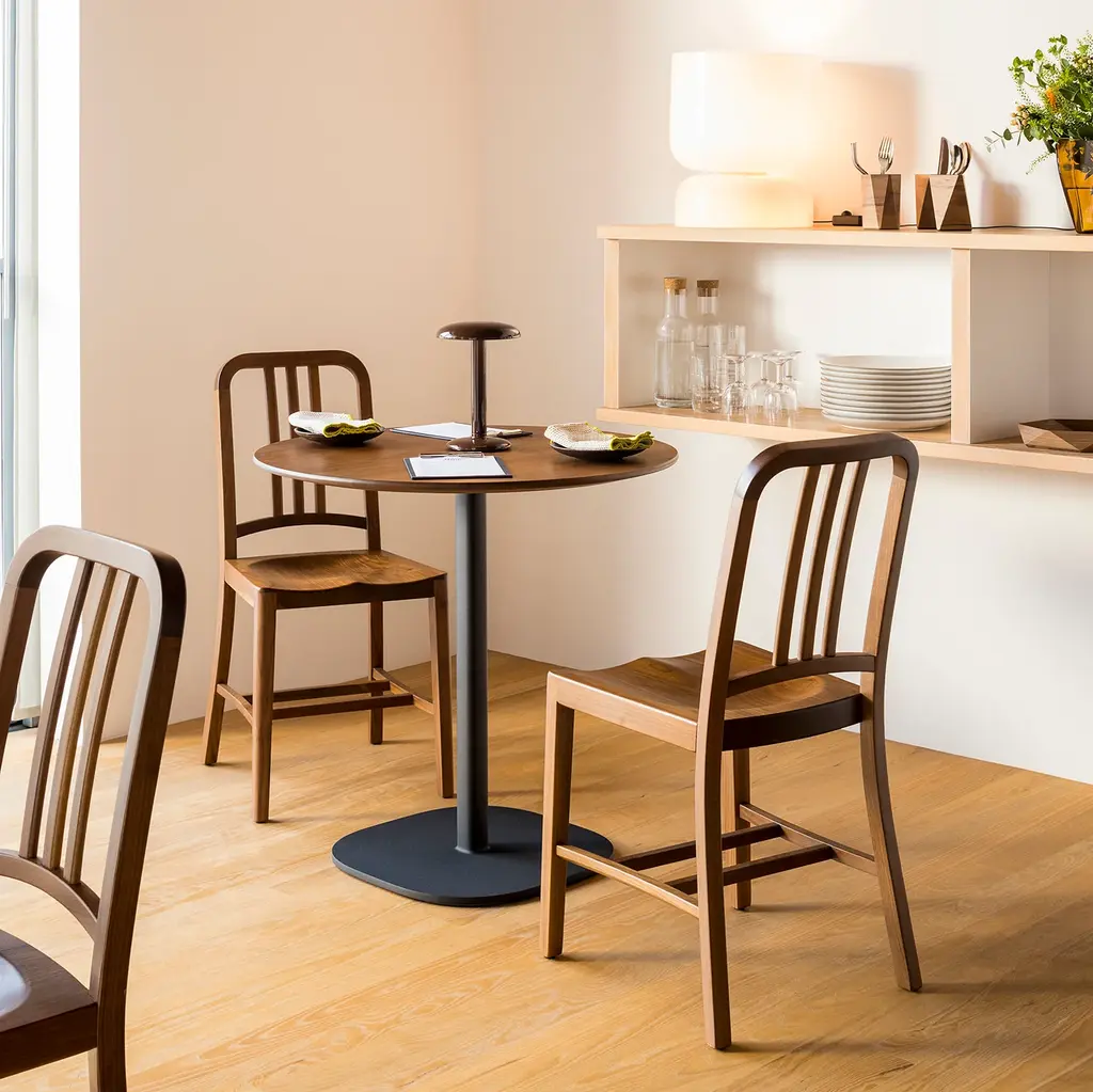 Navy Wood by Emeco, 2019 Our iconic Navy Chair shape, in the warmth of wood. Available in three solid wood finishes - all locally sourced from sustainably managed forests and handcrafted in collaboration with our Amish neighbors in Lancaster, Pennsylvania. Standard glides: all-round soft plastic TPU glides. Alternative glides available at an upcharge. Please note that wood is a natural material, with variations in color and grain pattern to be expected.