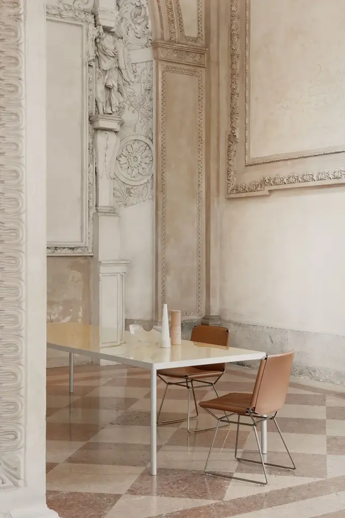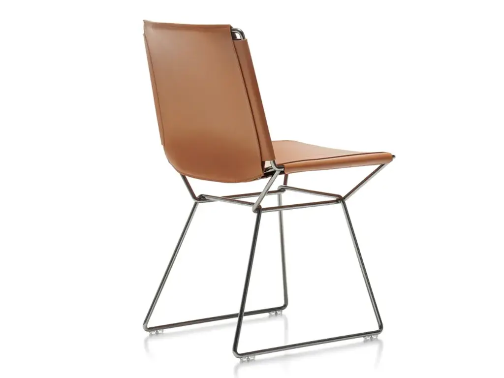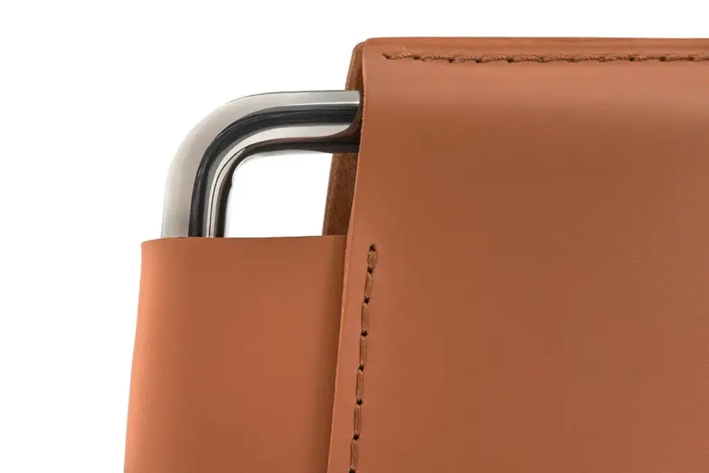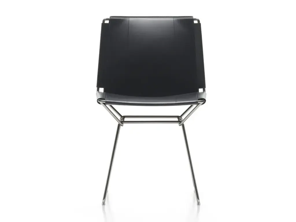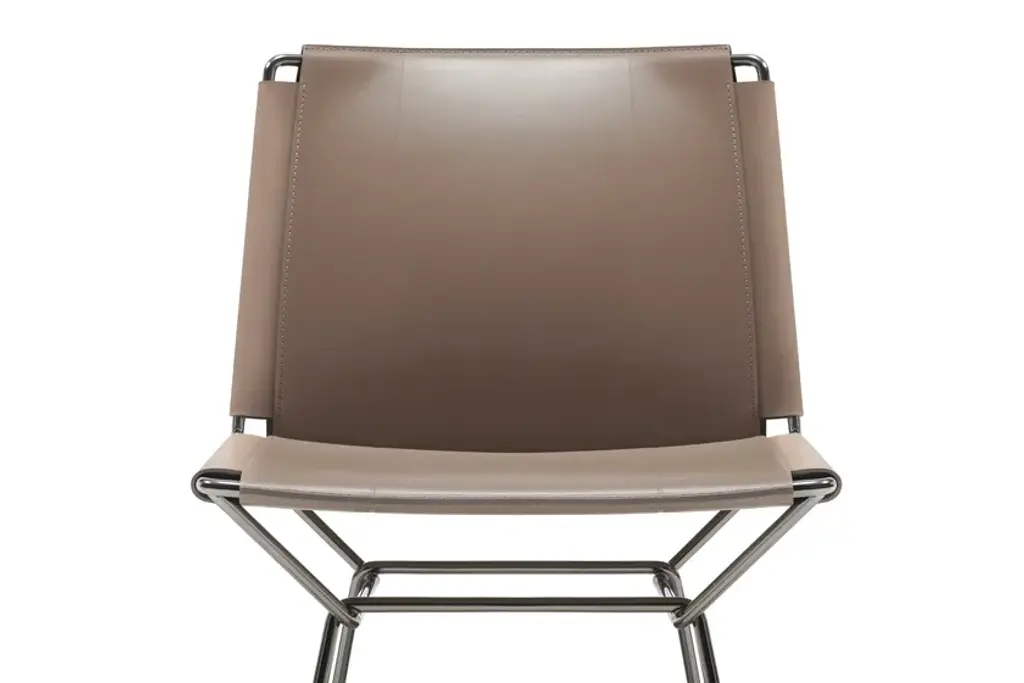 Elegant, light and sophisticated: Neil Leather Chair and Stool is the natural evolution of Neil, the icon of essential style created in 2018 by Jean Marie Massaud.The concept for this chair borrows some aspects of the classic form and “historical” characteristics of the Bauhaus period: very simple tubular frames with seat and backrest in taut saddle-hide.The exquisitely crafted saddle-hide upholstery, 100% made in Italy, is a symbol of the quality and exceptional competence of our manufacturing sector. This product is hand made with the same level of care as is used for leather handbags.Design and traditional craftsmanship are combined in this product, which can be used in different settings, from the most classic to the most modern and contemporary.StructureThe load-bearing structure of the seat and backrest is made of steel rod and available in a glossy galvanic finish in black chrome. UpholsteryThe thick full grain saddle-hide is simply stretched taut between the parts of the structure and guarantees unexpected comfort even though it has a simple, definite form.The product is made completely by hand, entirely in Italy, a guarantee of high quality craftsmanship and great attention to detail: seams in heavy duty thread, dyed edges, and pressed areas on the leather surface form raised decorations that emphasise the tension and pattern.The saddle-hide upholstery is available in the following colour variants: Black (02), Dark Grey (03), Natural (26) andTurtledove (29).The saddle-hide upholstery is not removable.