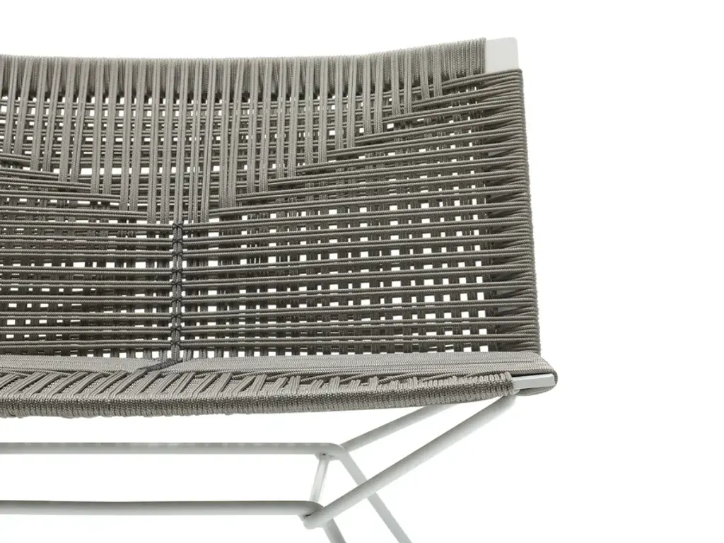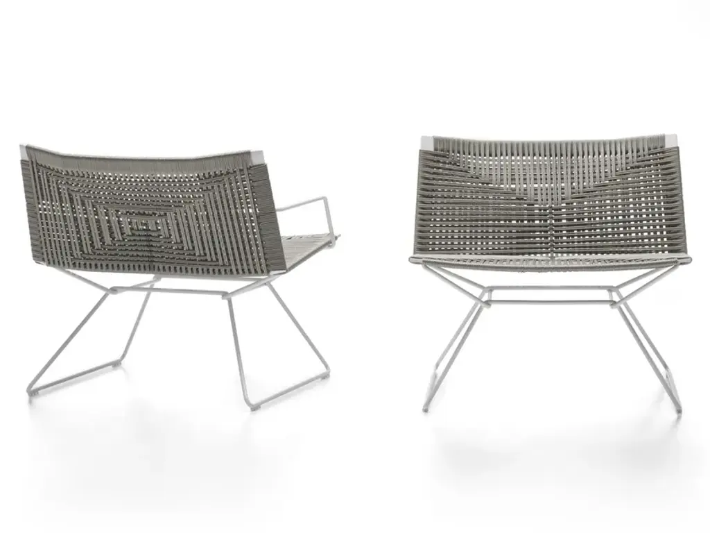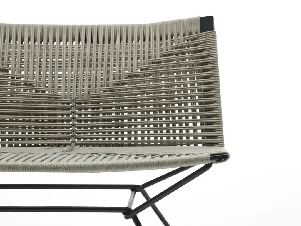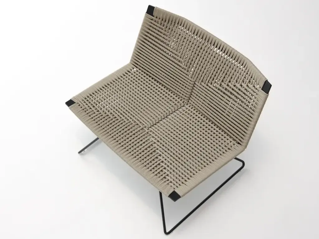 The seats are made with an original and exclusive weave. Handmade product.An extension of the Neil collection, with an inclusive image, NEIL TWIST makes functionality and versatility its primary features.Due to its iconic nature it is a perfect accessory in both indoor and outdoor environments, able of conferring character, thanks also to its bright colours, to modern gardens and terraces.StructureLoad-bearing seating structure made of steel, woven withhigh-tenacity polyester cord, solution-dyed, guaranteeing high resistance to atmospheric agents, light, and abrasions, with stretch resistance. Sled-base made of steel rod.The frames are powder painted with a specific treatment for outdoor use, in the following colours:• matt painted white X053;• painted matt lead black X138.Available in the low version, with or without armrests.Variants and typesCord weave available in the following colours:• Matt ecru (col. 23);• Matt anthracite grey (col. 03);• Glossy English green (col. 17);• Glossy orange (col. 11).*the pairing of cords/structure is fixed. See the next page.All Neil Twist models have a contrasting stitching detail, in glossy anthracite colour.AccessoriesProtective rain cover in light gray color, specifically for outdoor products, waterproof, made of 100% polyester, outside with acrylic coating, inside with acrylic resin coating.Its characteristics are emphasised by its fully fungicidal Teflon finish.Each rain cover comes with a closable slip cover, so that it can be folded and kept correctly when not in use.Use and maintenance of the protective rain coverFor correct washing, use a delicate neutral soap and water, and rinse thoroughly after washing, using only water.After cleaning, allow the fabric to dry correctly before folding it and putting it away, to avoid it getting mouldy.NB Avoid the fabric coming into direct contact with weed killers, fertilisers, and chlorine, as these may stain the protective rain cover indelibly.