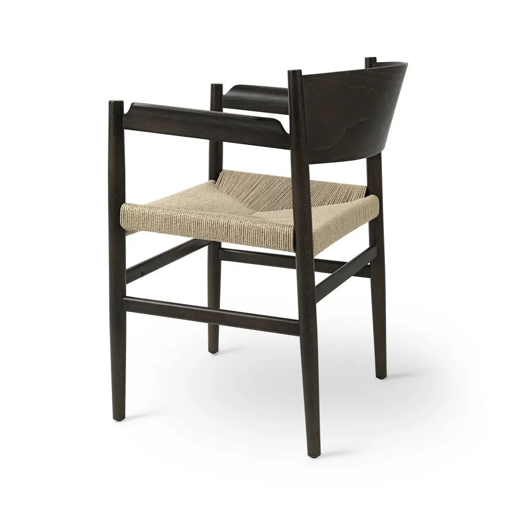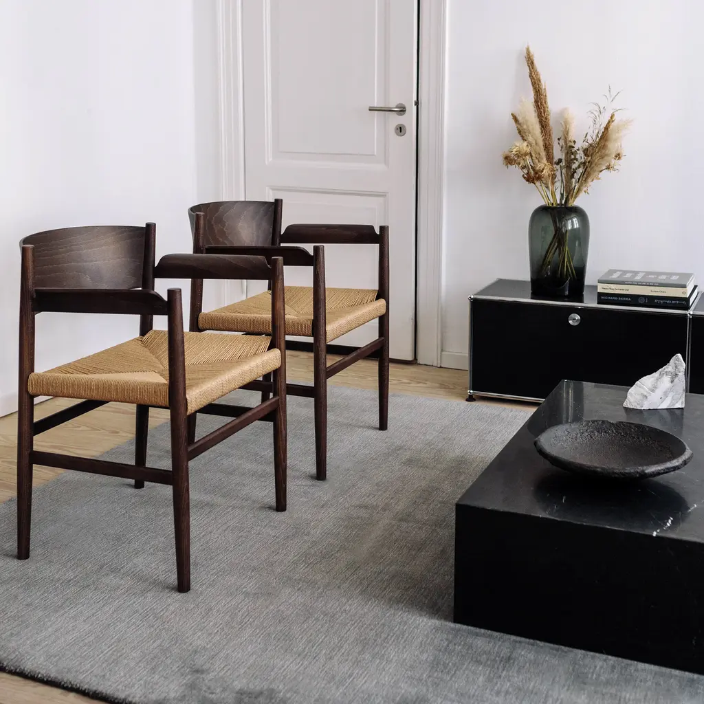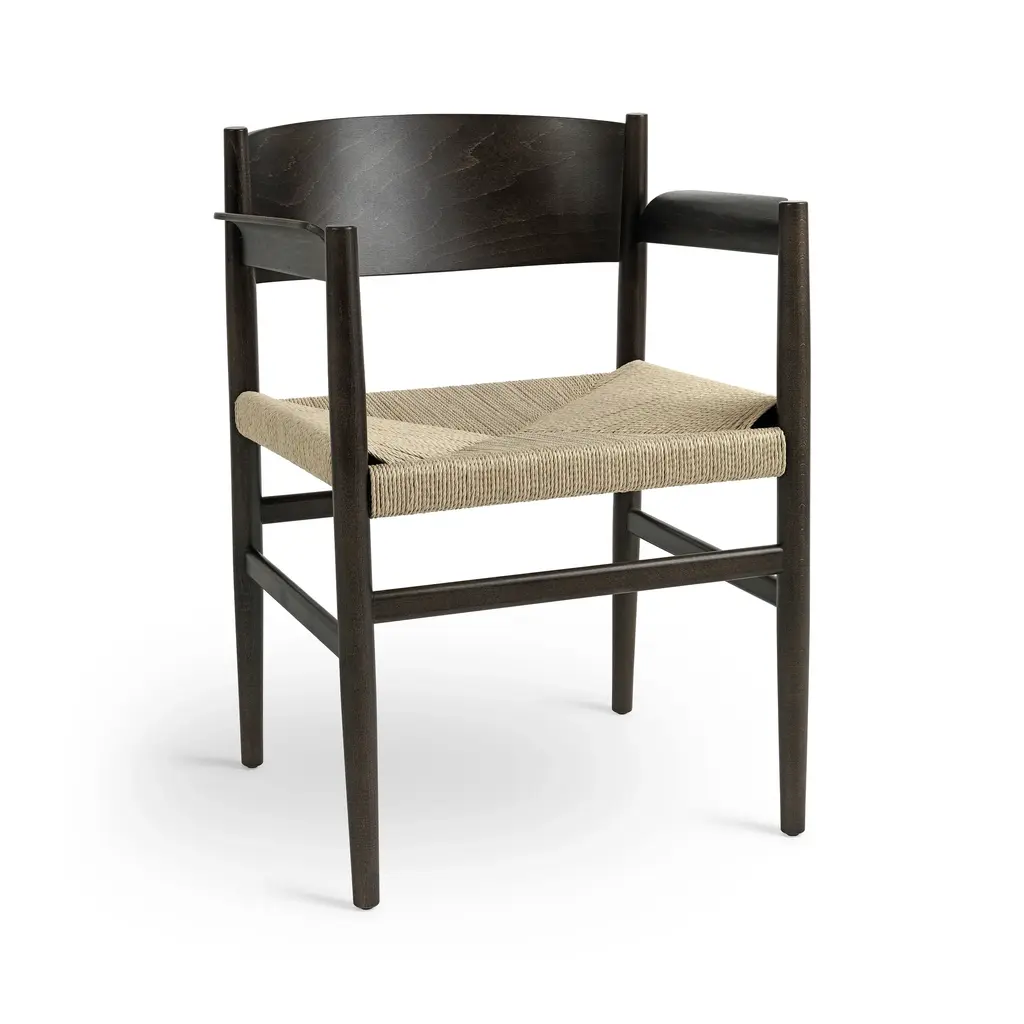 Nestor means ‘the noblest and - implicitly the wisest’ and exemplifies how genuine materials and detail to comfort create great design. The chair is designed with careful attention to detail making it an exceptionally comfortable and a long-lasting piece of furniture, shaped to fit the human body. The wide armrest matches the backrest and creates a large surface to rest the arm, which increases comfort. The backrest is bent in an angle that provides a surprisingly comfortable sitting position. Nestor is available with a woven paper-cord seat or a webbed, which both is a reference to the old shaker tradition, while the resilient material makes the chair comfortable to sit in. Features