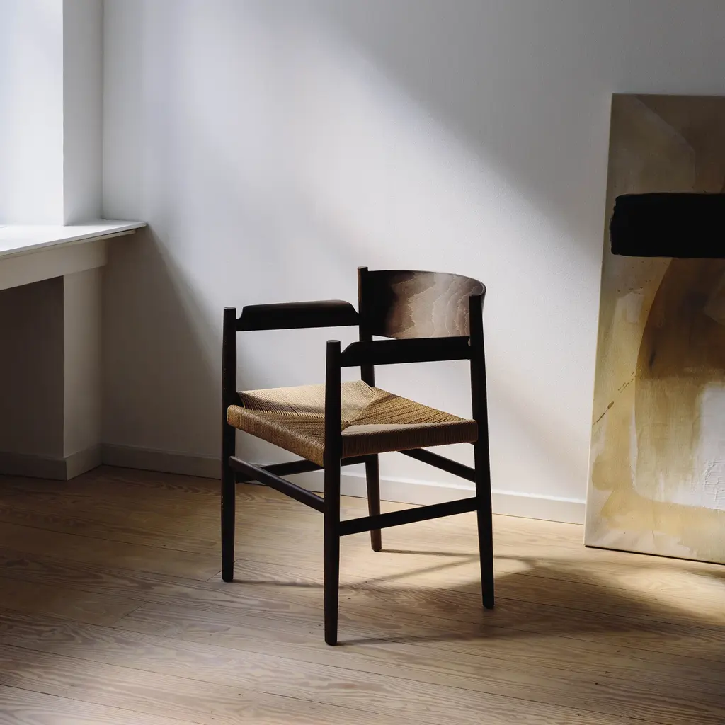Nestor means ‘the noblest and - implicitly the wisest’ and exemplifies how genuine materials and detail to comfort create great design. The chair is designed with careful attention to detail making it an exceptionally comfortable and a long-lasting piece of furniture, shaped to fit the human body. The wide armrest matches the backrest and creates a large surface to rest the arm, which increases comfort. The backrest is bent in an angle that provides a surprisingly comfortable sitting position. Nestor is available with a woven paper-cord seat or a webbed, which both is a reference to the old shaker tradition, while the resilient material makes the chair comfortable to sit in. Features