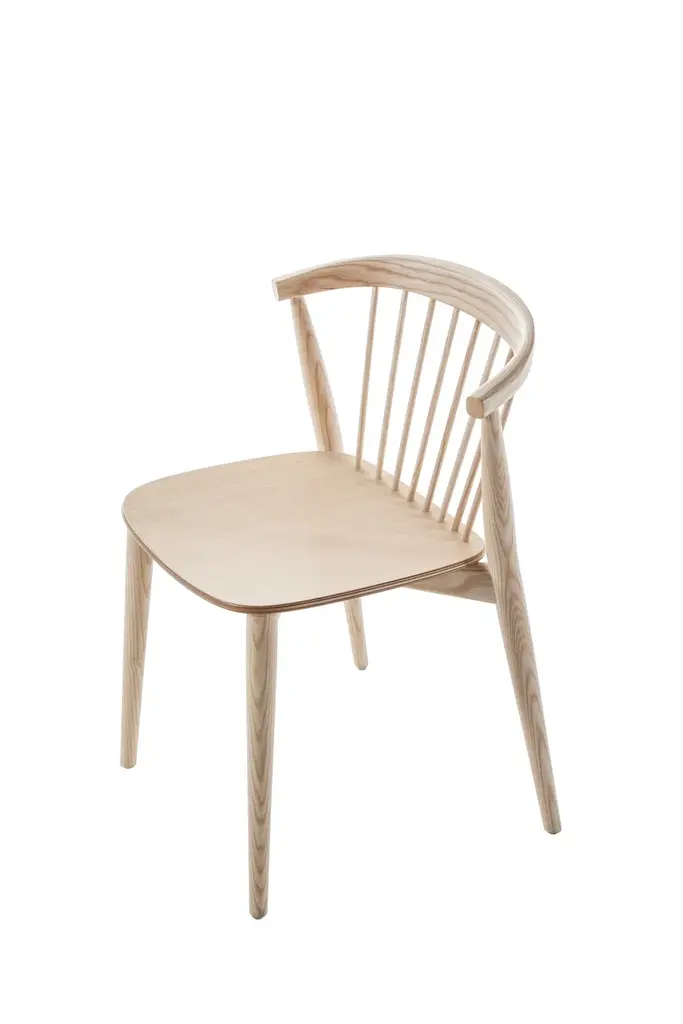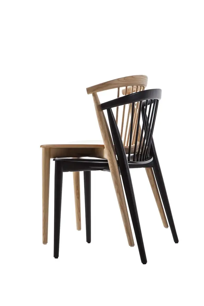 The result of a contemporary re-interpretation of the timeless charm of Windsor-style chairs: Newood chairs.Designed by the creative duo, Alberto Brogliato and Federico Traverso, Newood chairs express the successful harmony between technologically advanced craftmanship and manufacturing excellence. An encounter between past and present, attained through the extraordinary study of details, in particular the distinctive back rest in solid curved wood which provides pleasant tactile element: the genuine and reassuring beauty of wood.Structure: solid ashSeat: beech plywood ash veneeredFinish:113 bleached ash, 115 wengé-stained ash, 112 black-stained ash, 118 blue Shanghai aniline stained ash, A10 cherry red aniline stained ashFeet: black nylonTrolley: metal tube, matt anthracite-coloured paintNotesThe chair is equipped with black nylon spacers beneath the seatSeats stackable: maximum 4 chairsSeats stackable on trolley: maximum 12 chairsThe trolley has side padding to protect the chairs