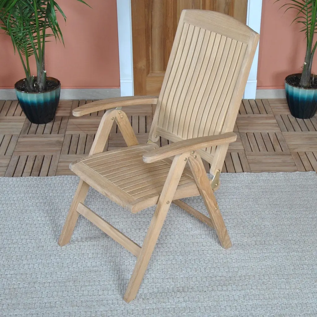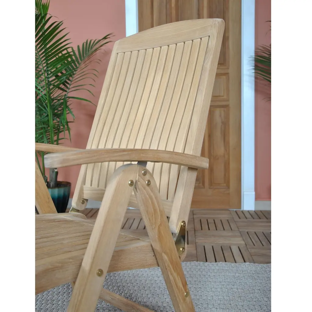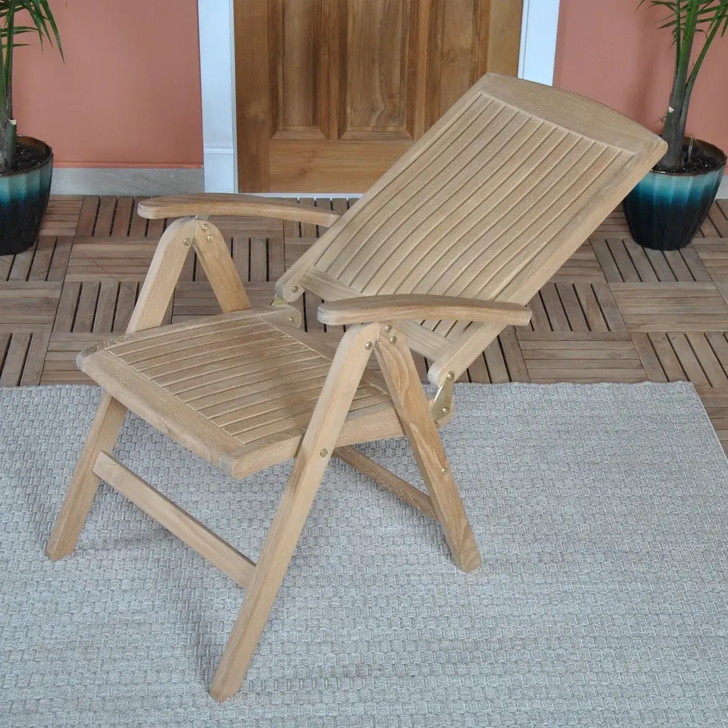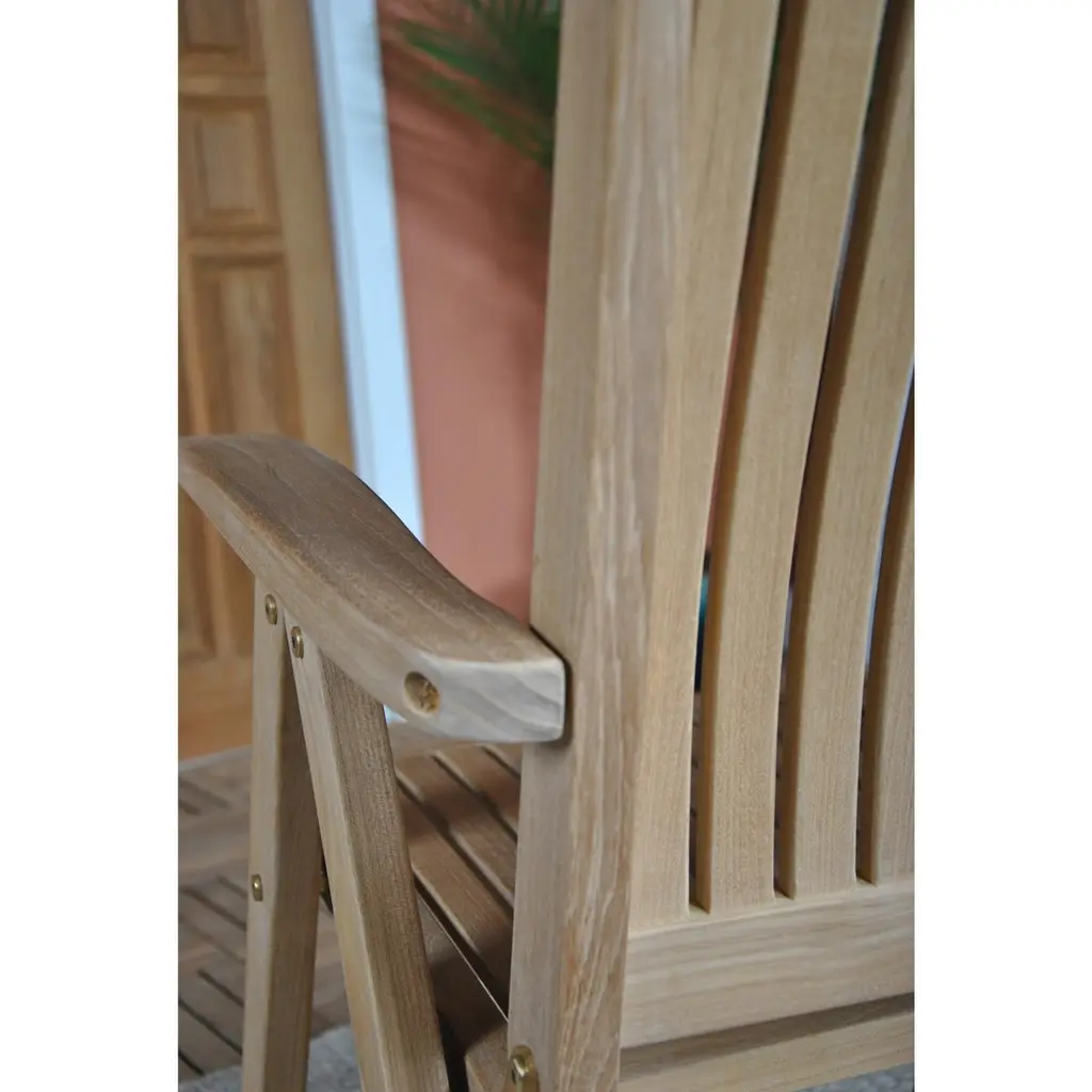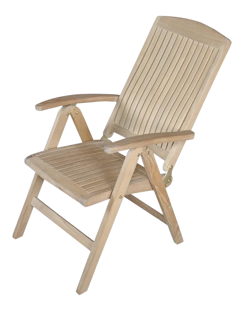A solid teak folding chair the Niagara Teak Cornwall Chair is suitable for use either indoors or outdoors. Cleverly crafted the chair back has several different resting positions so you can enjoy the day at the angle of comfort that best suits you! The straight lines of the frame of the chair are offset by the subtle curves in the chair back seat and arms making it comfortable enough to enjoy all day. Solid brass hardware adds a look of sophistication in the details of the chair. Chair folds away and can be easily stored in a small space when not in use.Teak wood has been used for boat and outdoor furniture construction for centuries as the wood is well known for it’s weather resistant qualities. If left outdoors the beautiful golden brown color of the wood will assume a silvery grey patina over time giving this chair the classic look of furniture found in English gardens. If you wish to restore the teak furniture to it’s original golden hue we recommend a light sanding with 220 grit sandpaper. Solid brass hardware adds a look of sophistication in the details of the chair. Chair folds away and can be easily stored in a small space when not in use.Chair Measures 25″w x 31d x 43″h. This is solid, first quality, genuine teak produced from sustainably managed plantations.