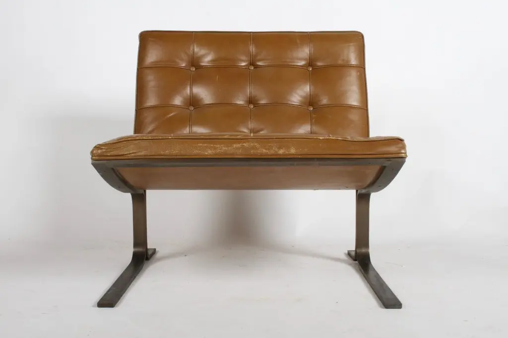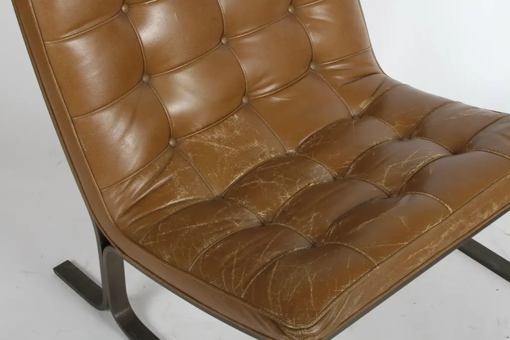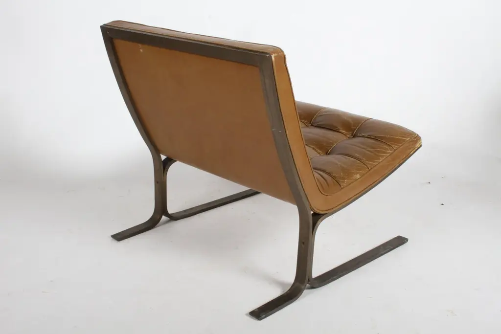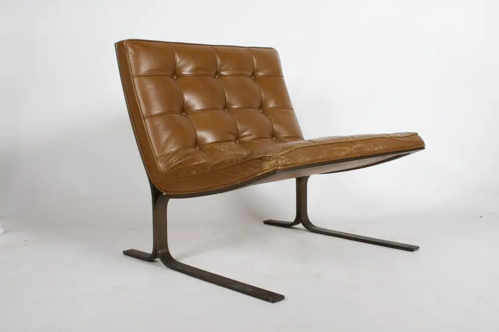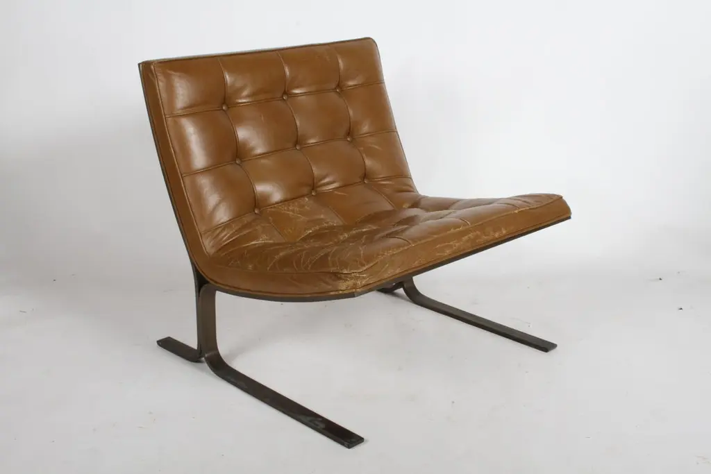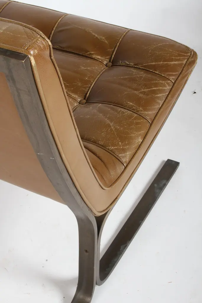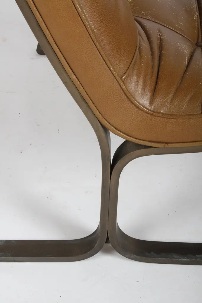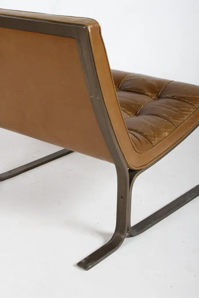 Nicos Zographos Cantilever Bronze Base Lounge Chair Ch28 In Carmel Leather