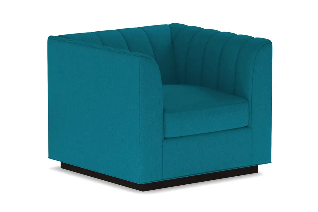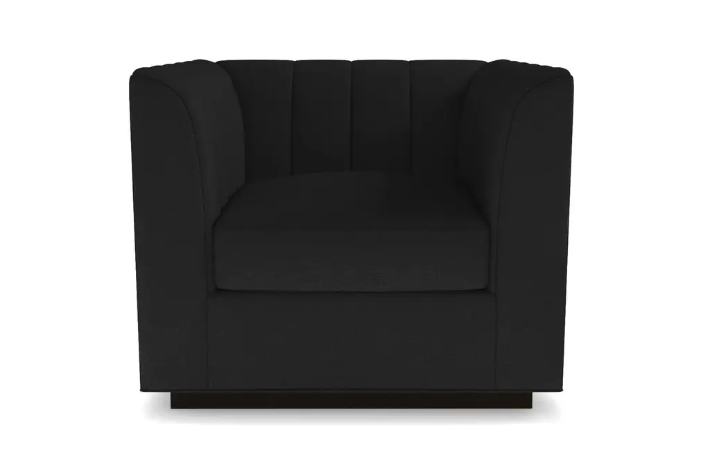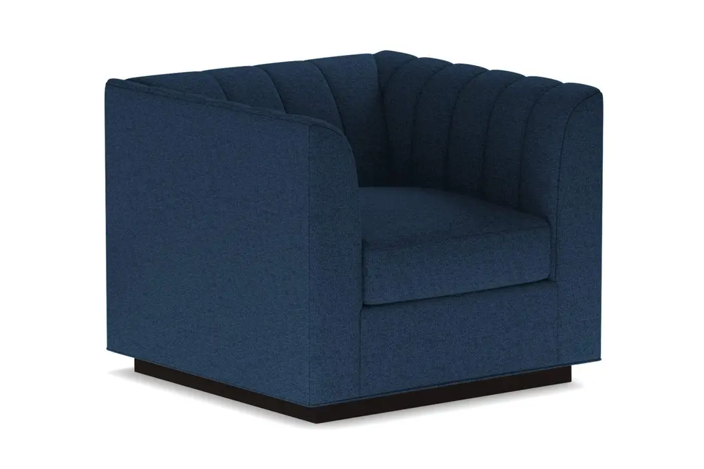 This sleek, and oversized chair has a tight channel-tufted back that has an art deco flair with a modern silhouette. With high arms and a high back this chair envelopes you like an old school restaurant booth but the deep seat has you staying for dessert.