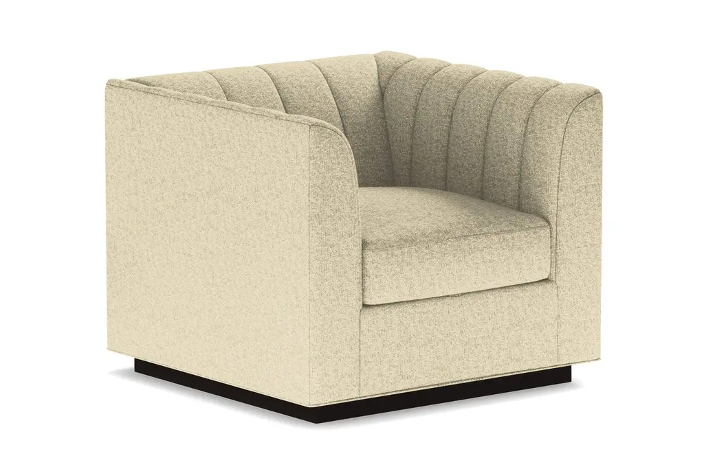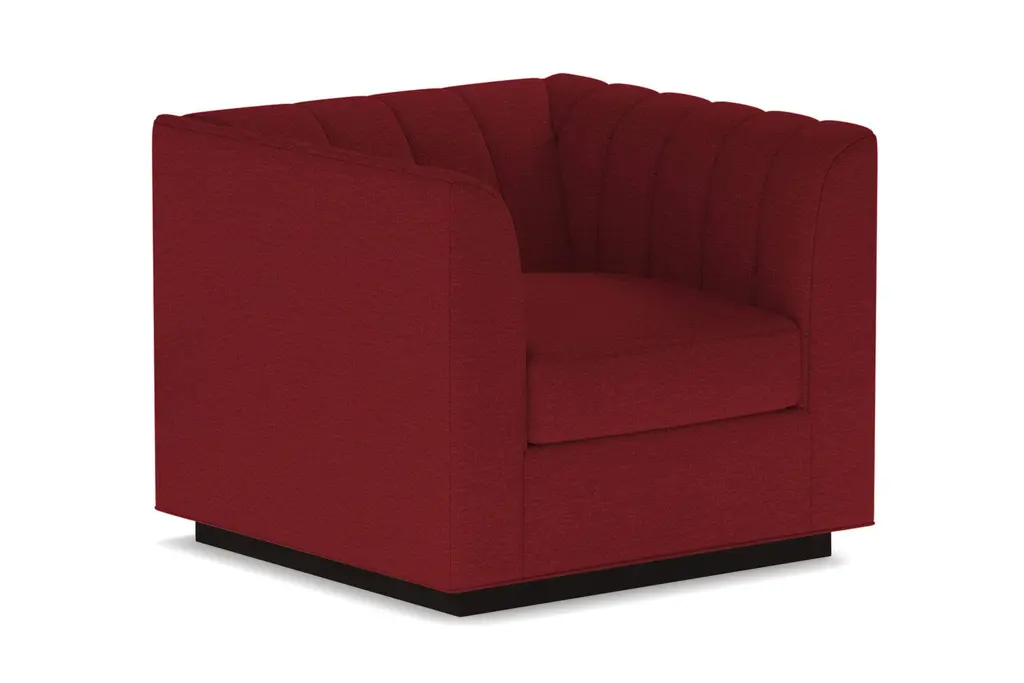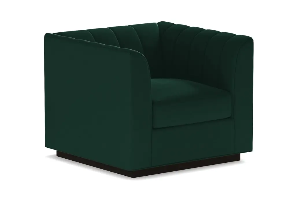 This sleek, and oversized chair has a tight channel-tufted back that has an art deco flair with a modern silhouette. With high arms and a high back this chair envelopes you like an old school restaurant booth but the deep seat has you staying for dessert.