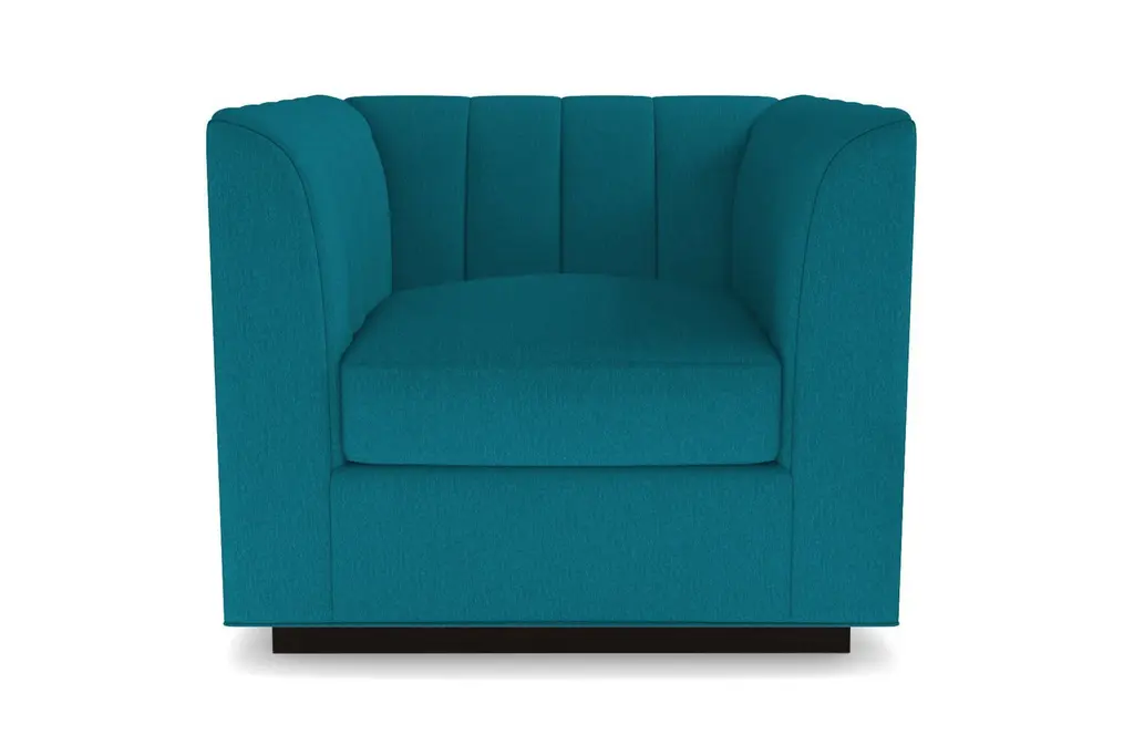 This sleek, and oversized chair has a tight channel-tufted back that has an art deco flair with a modern silhouette. With high arms and a high back this chair envelopes you like an old school restaurant booth but the deep seat has you staying for dessert.
