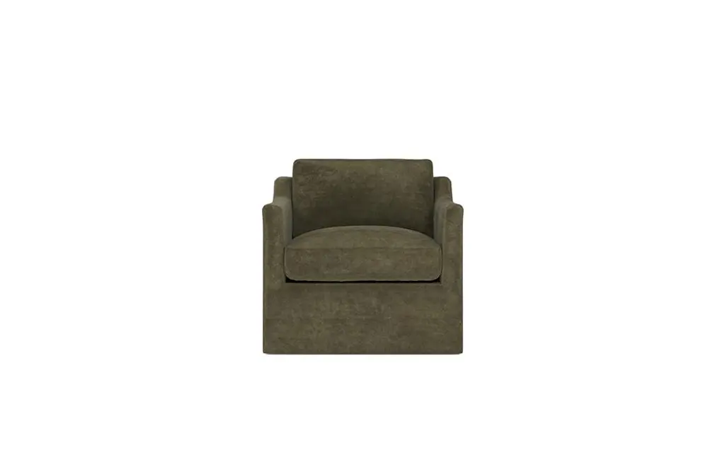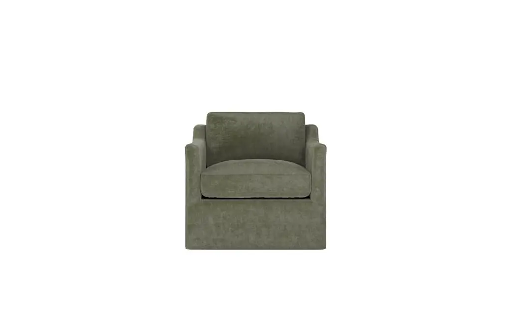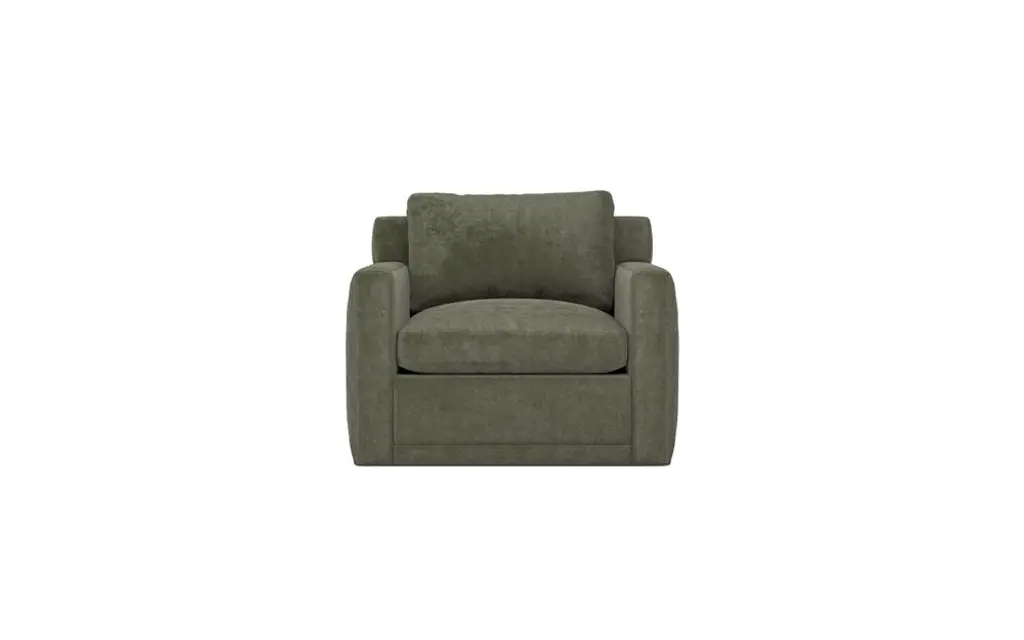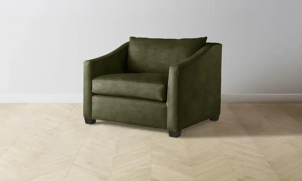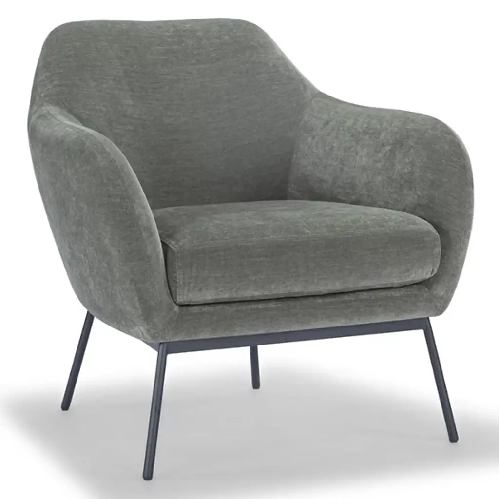 Envelop yourself in mod luxury with the plush and sophisticated Nord Chair. With an elegant, curved silhouette, the Nord Chair invites you to sink in and stay awhile, with a retro yet timeless shape that’s emphasized by an ample, low profile back and feminine curved arms. Each piece has been expertly crafted in lush fabric, with a tight seat and back atop black steel legs that add a modern touch to the piece’s striking ‘70s-inspired sensibilities.