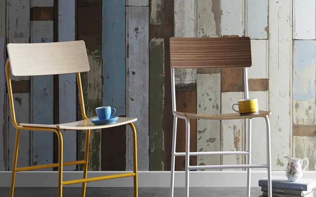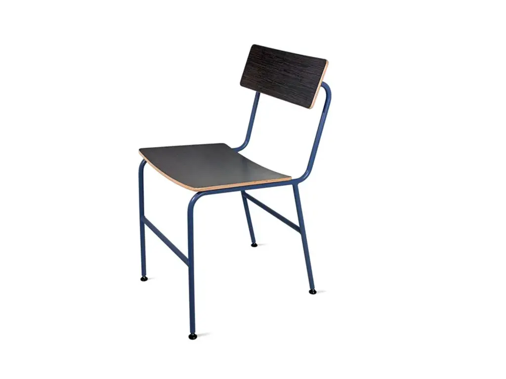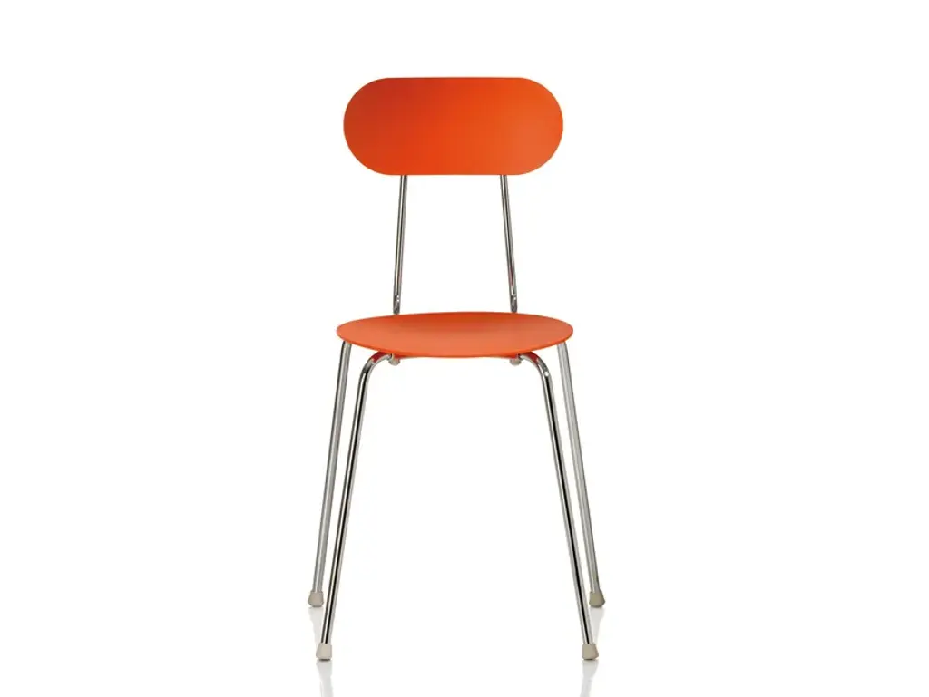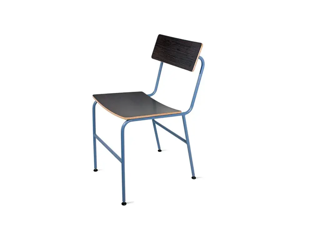 Chair with 0.63" zync- coated Iron Tubular, Powder coating. Beechwood Seat with Decorative Wood and Melamine Finishing. Plastic feet.