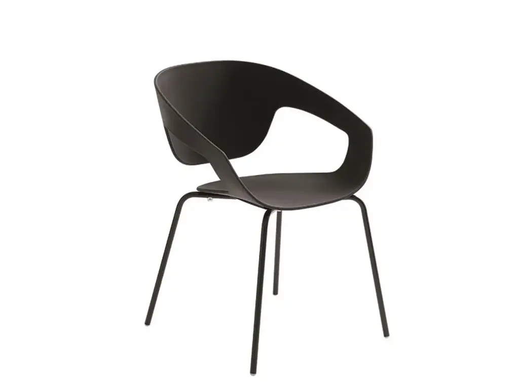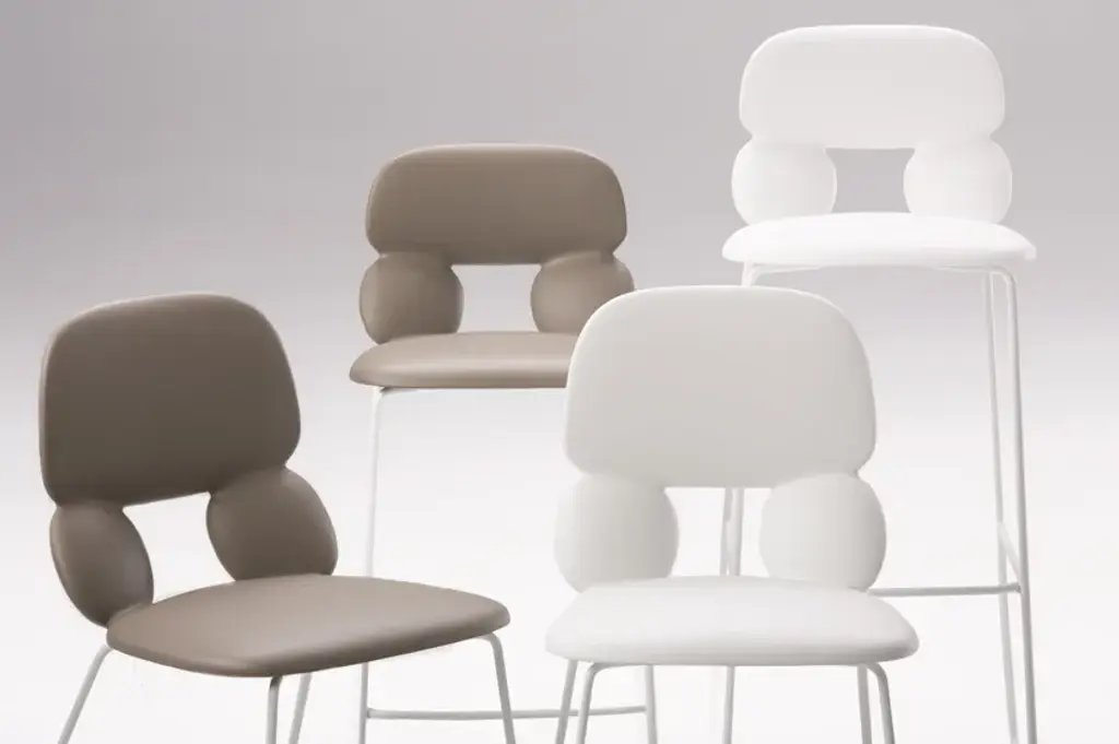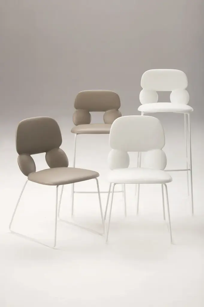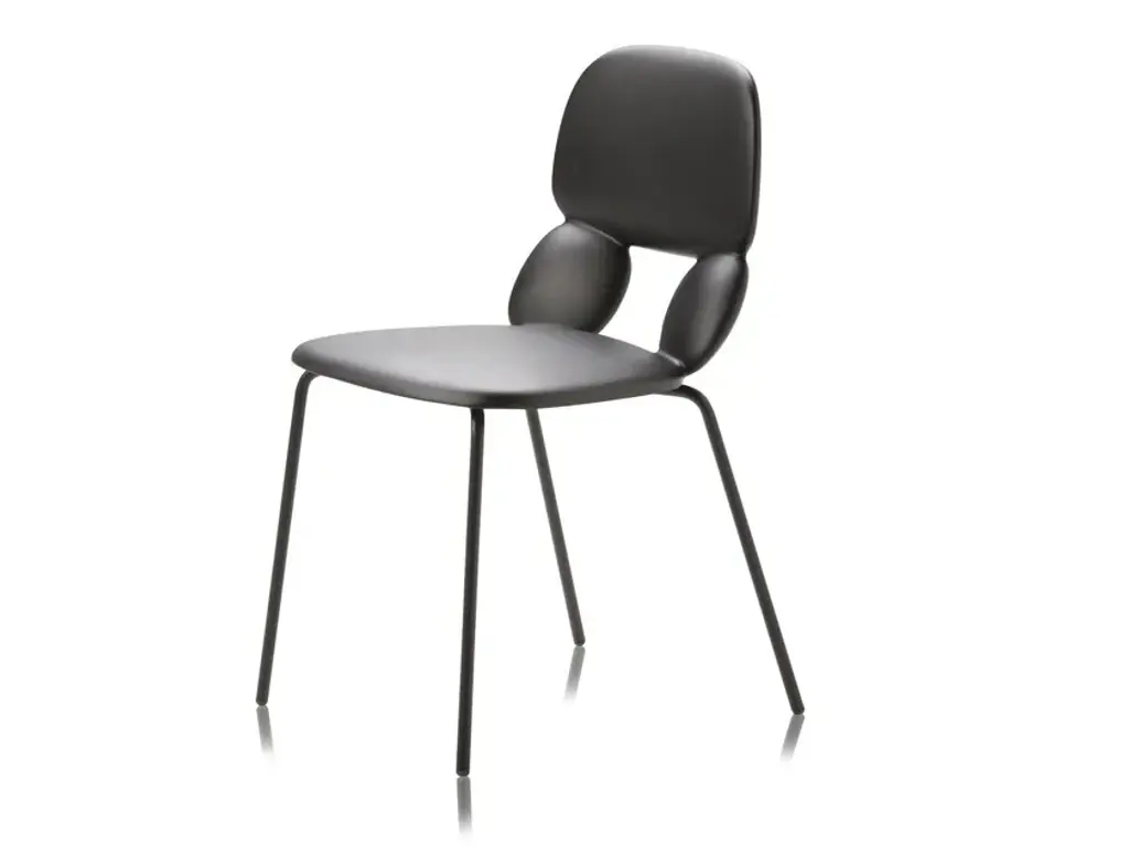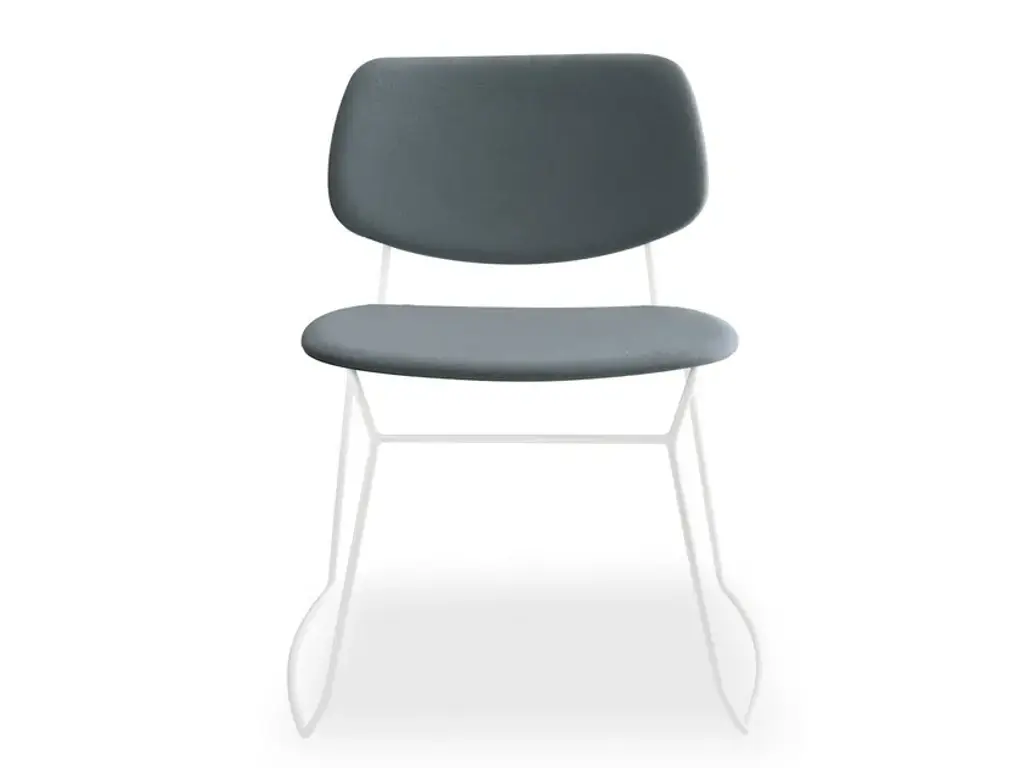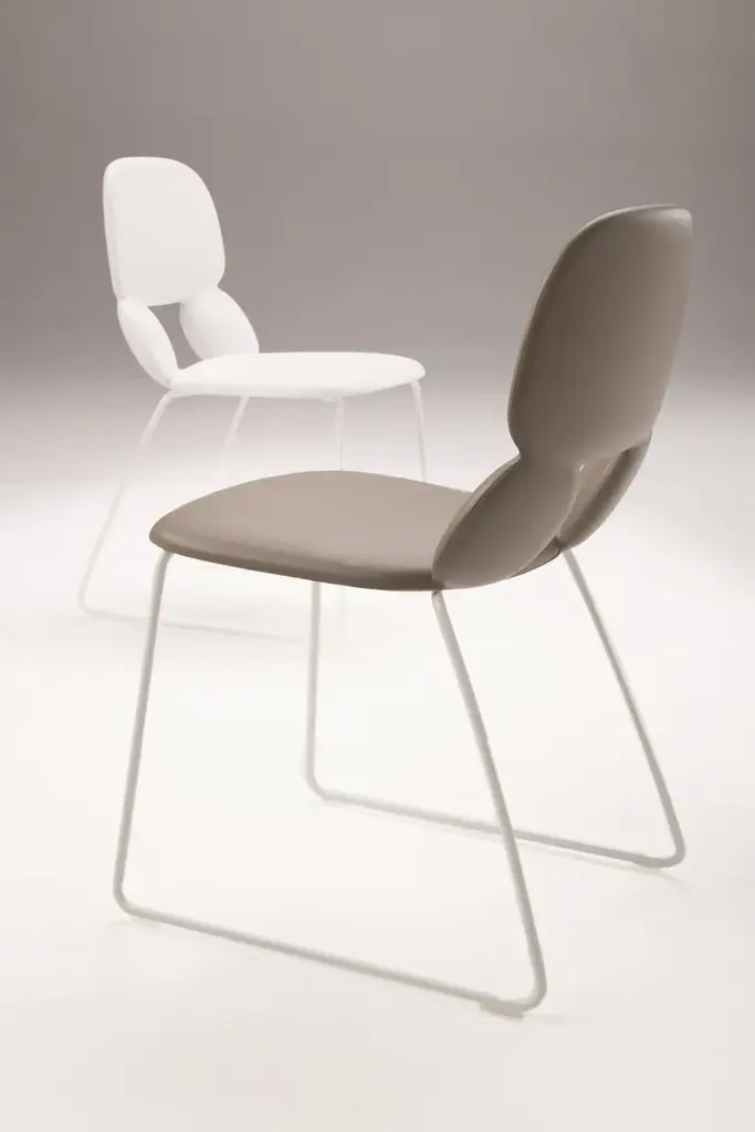 Soft and fire retardant Freeform polyurethane shell and black or white painted sled metal frame.Nube is the new collection in soft Tech polyurethane designed by Roberto Paoli. An original and captivating seat, combining the comfort of a padded chair with the advantages of a material that is exceptionally wear-resistant, easy to clean and look after. The collection consists of chairs and double-height stools with either four metal legs or a metal sleigh base. There is also an innovative variant combining wood and metal: Nube W is embellished with rounded beech legs fitted over the black- or white-varnished metal frame of the seat.