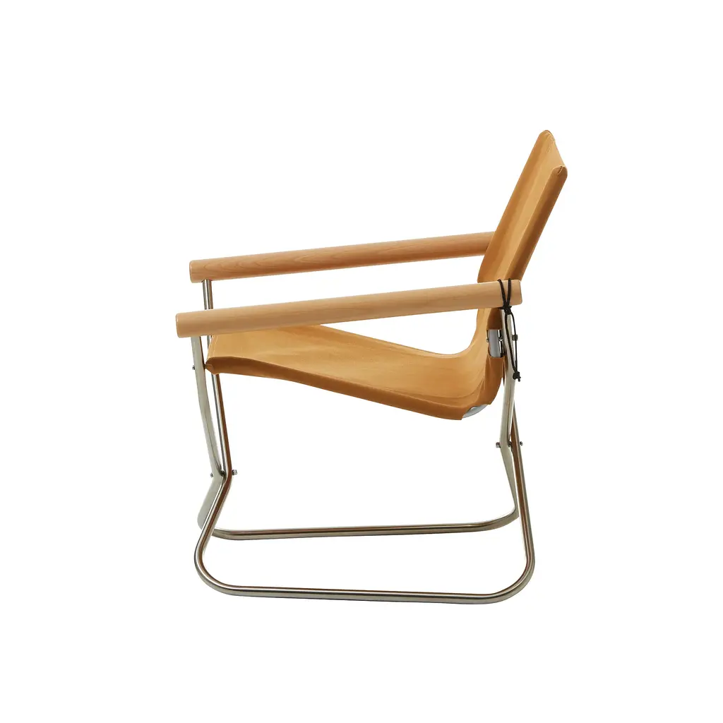 Inspired by the folding form of a traditional director’s chair, Takeshi Nii’s Ny Chair X80 elevates a time-honored classic. Laid-back and simple, it showcases his Danish heritage –dubbed after his family name and the Danish word for “new,” ny — in a gracefully curved silhouette. Stainless steel legs, beech arms, and a 100% canvas hammock seat make the relaxed seat a high-class affair. The lightweight frame is easily folded and portable, making it a flexible option for any home. Available in blue, natural canvas white, camel, vermilion orange or gray.