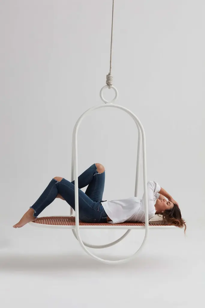 Based on absolute simplicity and extreme rationalization of lines and shapes, we thought of a shape that could be replicated identically and that, in itself, should make up the whole piece.Thus, the 3 oblong links of the same size emerged, which are light, resistant, and easy to install, making outdoor or indoor life more fun.The possibility of not only sitting down but also lying down was the motto for naming the piece as OCA, referring to the most traditional Amazon Indians way of sleeping.Because it is made of aluminum and synthetic fiber with an excellent natural touch, it can be used both indoors and outdoors.