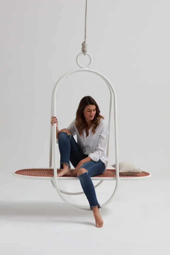 Oca, Minimalist Hanging Swing Chair By Tiago Curioni In Aluminium