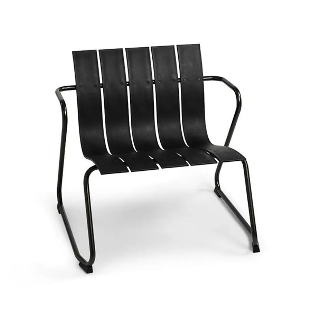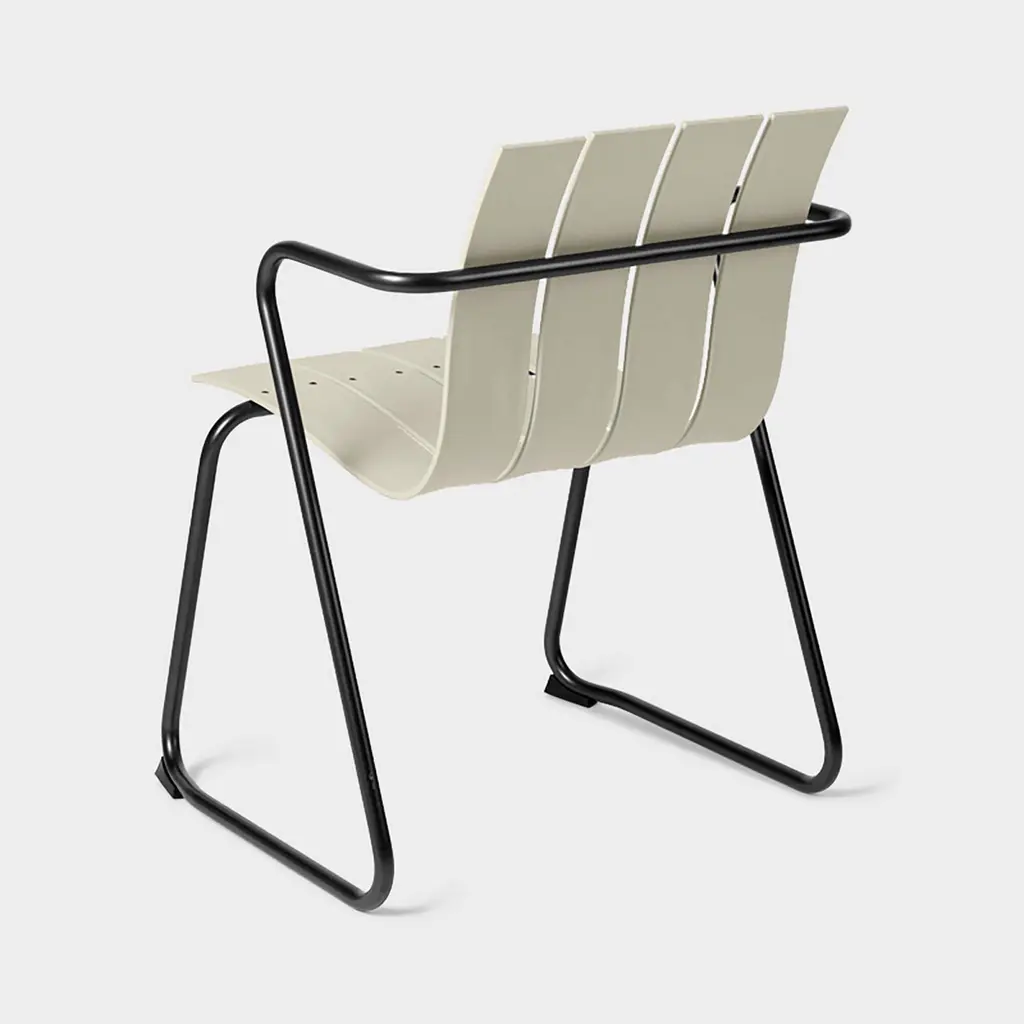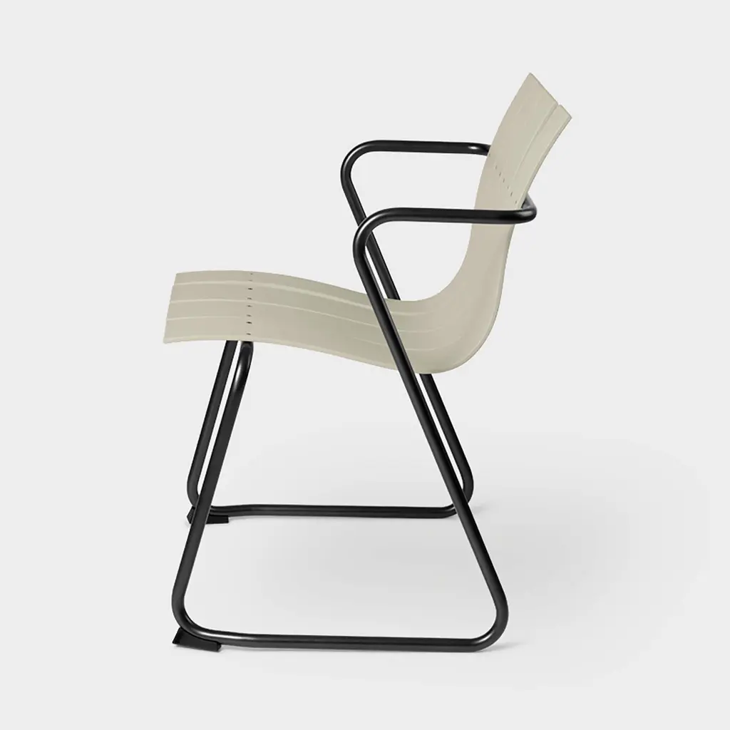 Simple shapes and a light profile characterize this outdoor chair, made with recycled materials that keep waste out of the ocean. It's crafted by Mater, a Danish brand that champions sustainability and ethical design.
