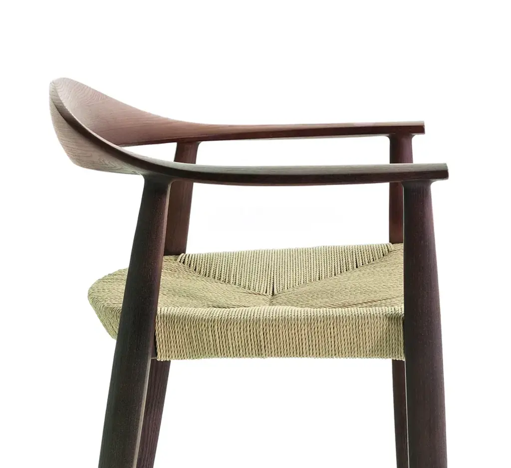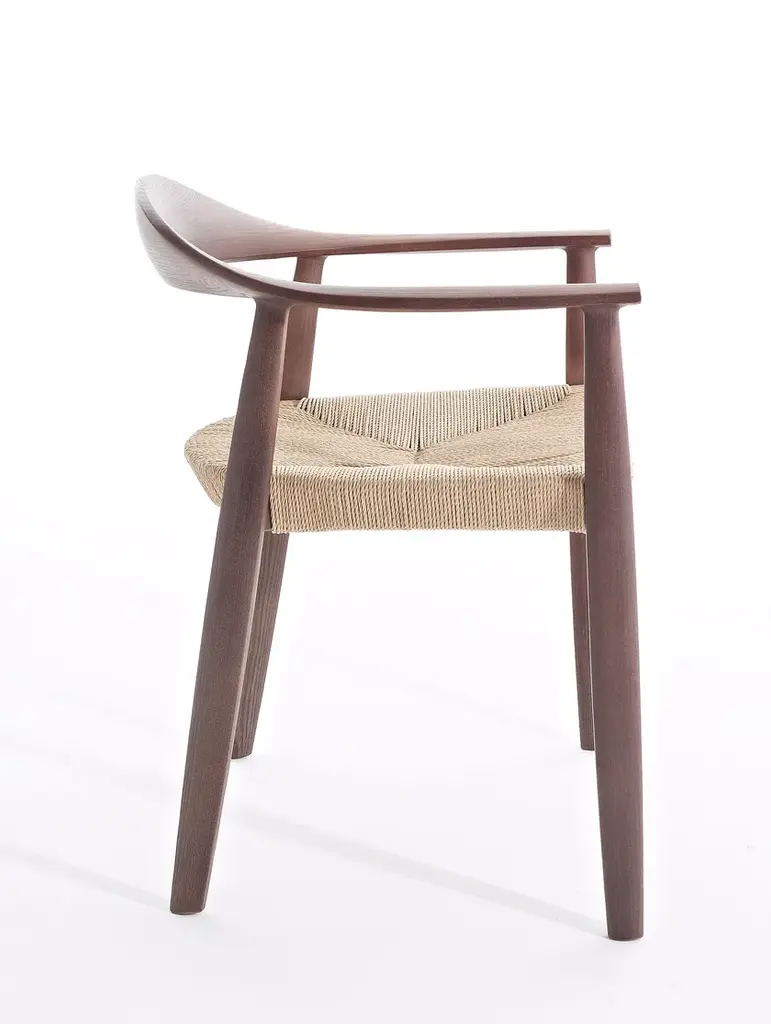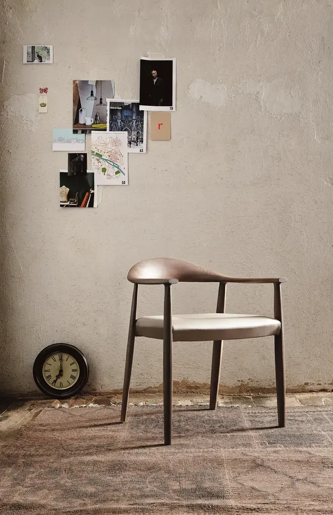 Odyssée is an armchair with natural or lacquered ash wood frame and back; its seat can be with natural hand-crafted straw or padded and upholstered with fabric, artificial leather or real leather.A tribute to the ancient art of woodworking; the line of the back of the Odyssée armchair, made of a single piece of ash, is pure poetry. A proposal of taste emphasized by the material and by the harmonious and refined style.