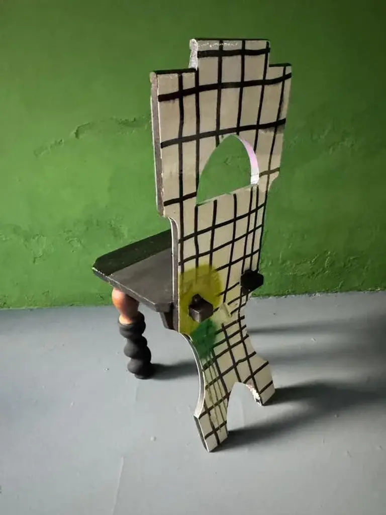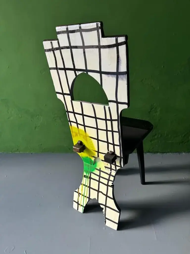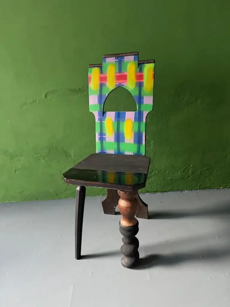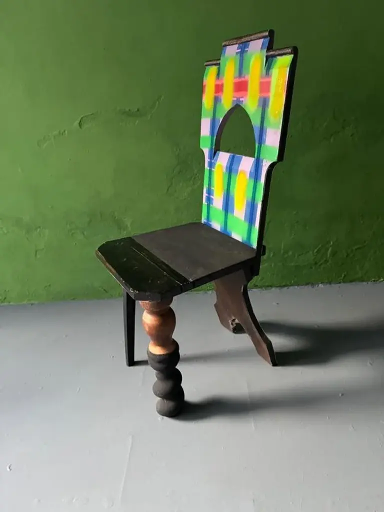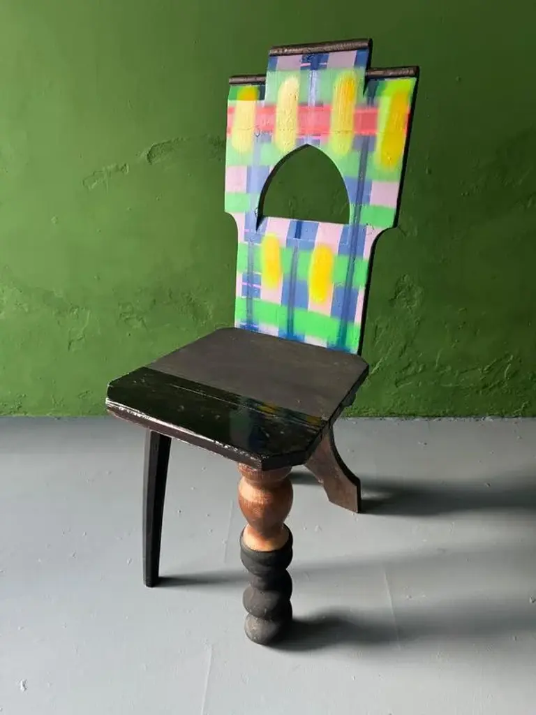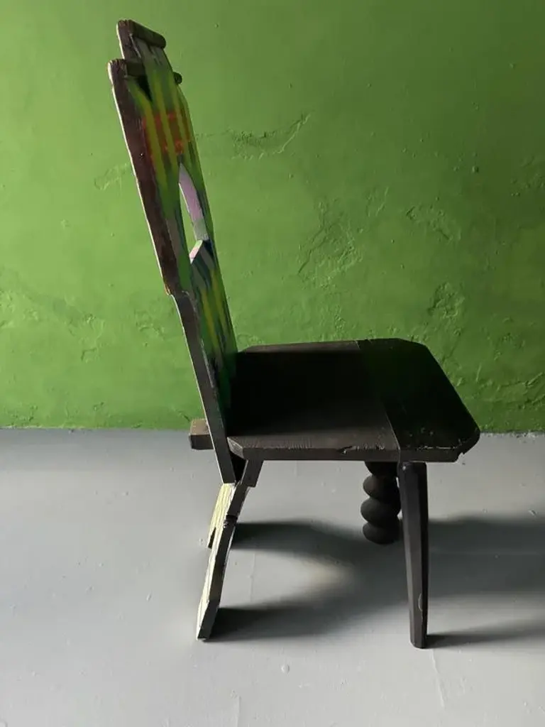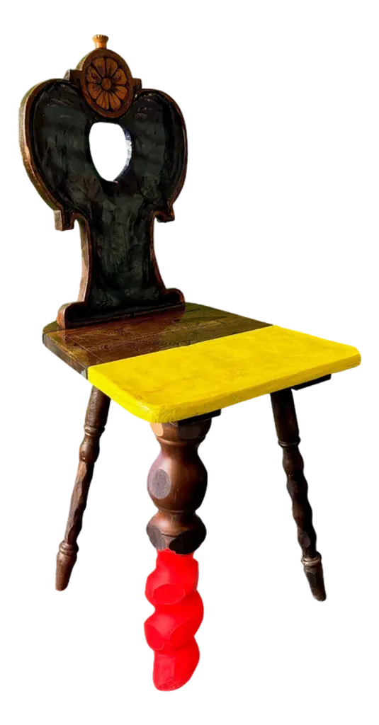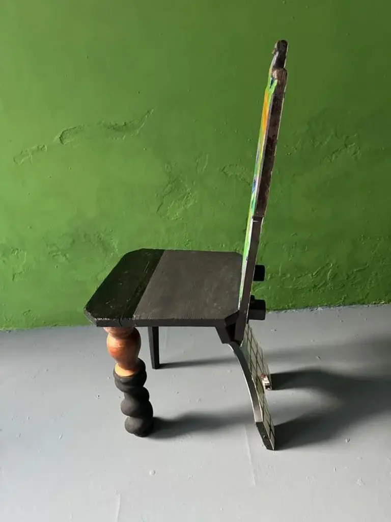 Oh romeo, where is juliet? chair by markus friedrich staab one of a kind dimensions: d 38 x w 40 x h 101 cm. Materials: wood, paint, lacquer. Churchchair contemporized, painted cut, and lacquered. this piece is attributed to the mentioned designer/maker. It has no attribution mark and no official proof of authenticity, however it is well documented in design history. I take full responsibility for any authenticity issues arising from misattribution