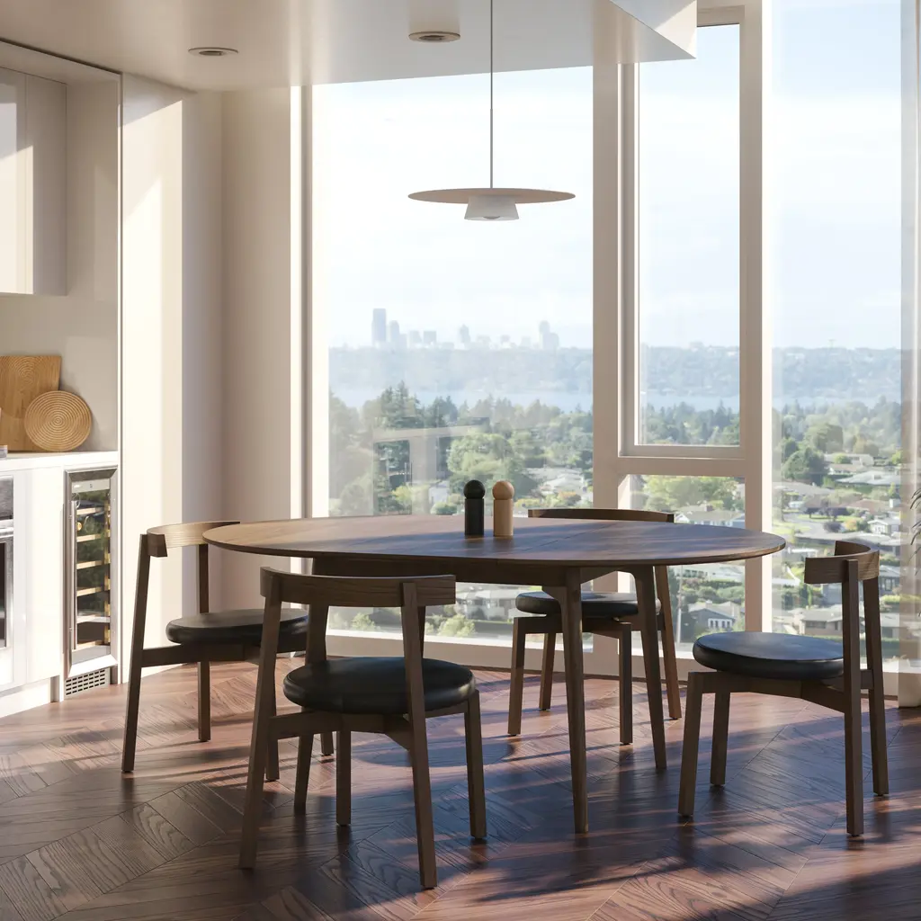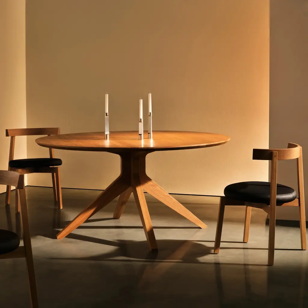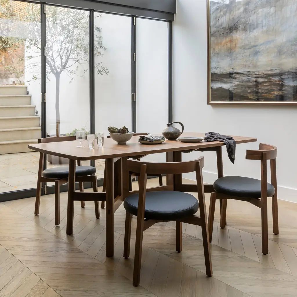 Shortlisted for a hospitality design award, Nanazin Kamali originally designed Oki-Nami Chair for a Japanese restaurant in Brighton, UK, and partnered with Case Furniture to bring it to a wider audience. With the attention to detail found in the Japanese creative tradition, sturdy everyday durability and a satisfying measure of comfort, the chair features a solid oak or walnut frame and leather-clad seat pad.