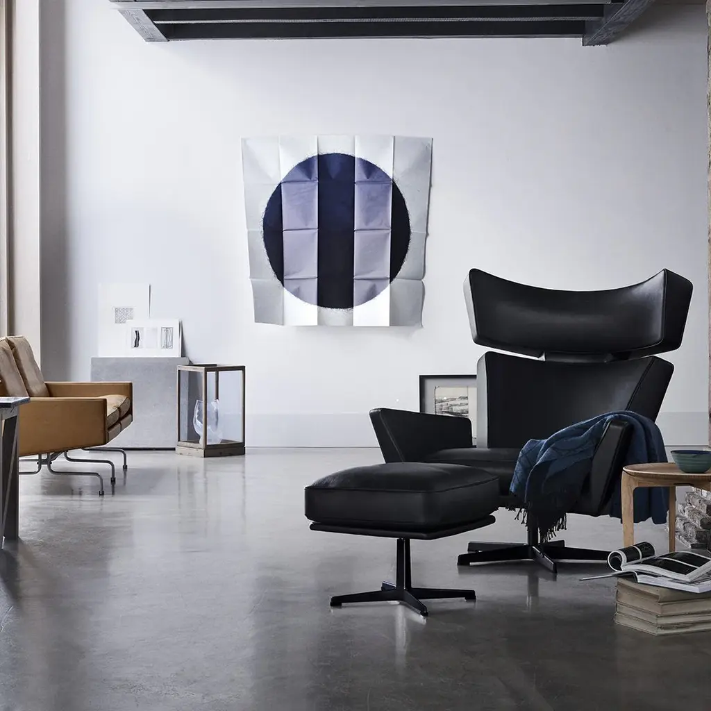 The Oksen easy chair takes on a sharp, powerful expression, dominating a room like nothing else. Arne Jacobsen shocked design connoisseurs all over the world when he first introduced Oksen in 1966 – after no less than five years of design experimentation. In contrast to many of his earlier pieces characterised by rounded, organic shapes, Oksen is the largest and most controversial chair Arne Jacobsen ever designed.