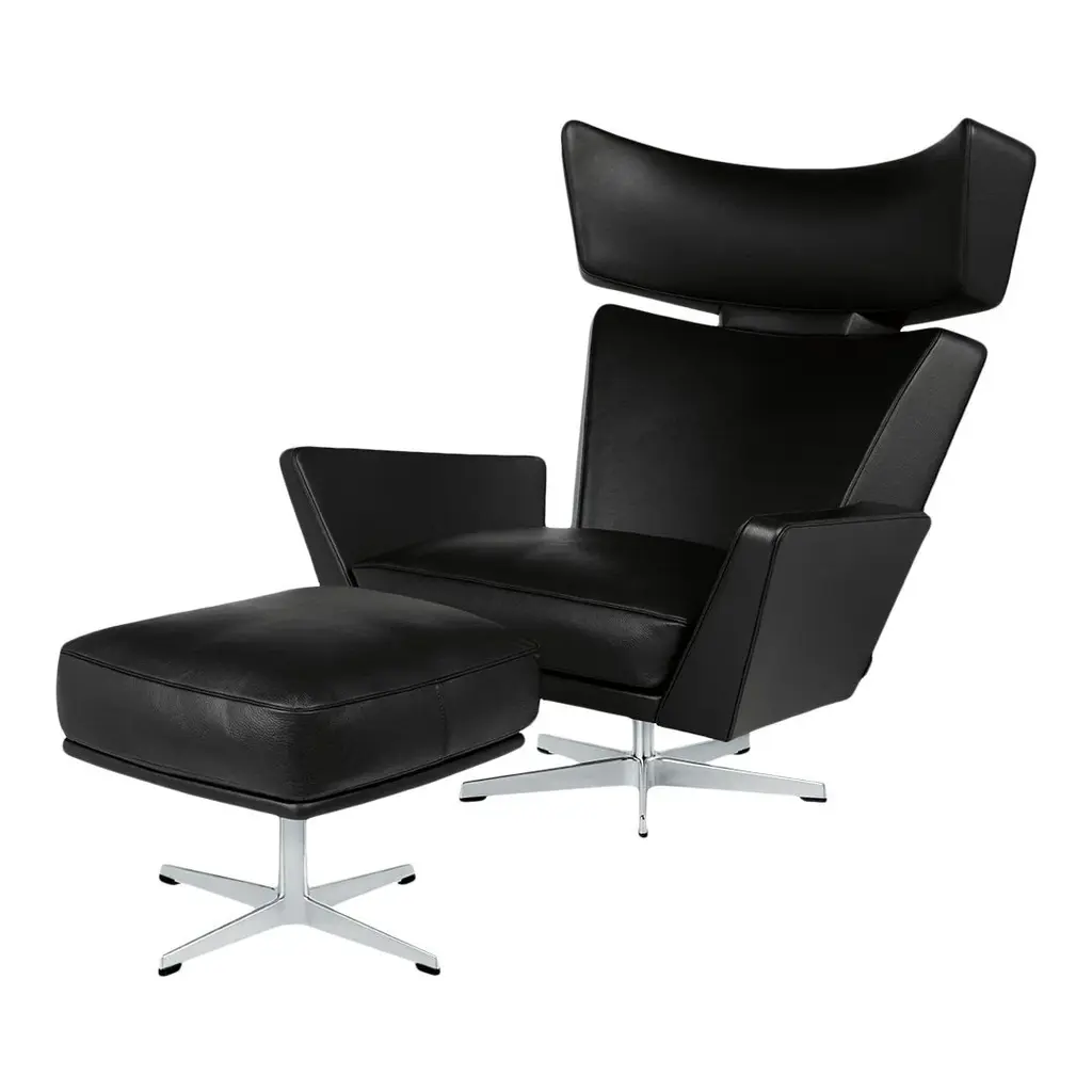 The Oksen easy chair takes on a sharp, powerful expression, dominating a room like nothing else. Arne Jacobsen shocked design connoisseurs all over the world when he first introduced Oksen in 1966 – after no less than five years of design experimentation. In contrast to many of his earlier pieces characterised by rounded, organic shapes, Oksen is the largest and most controversial chair Arne Jacobsen ever designed.