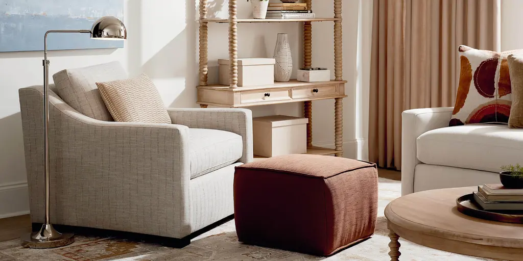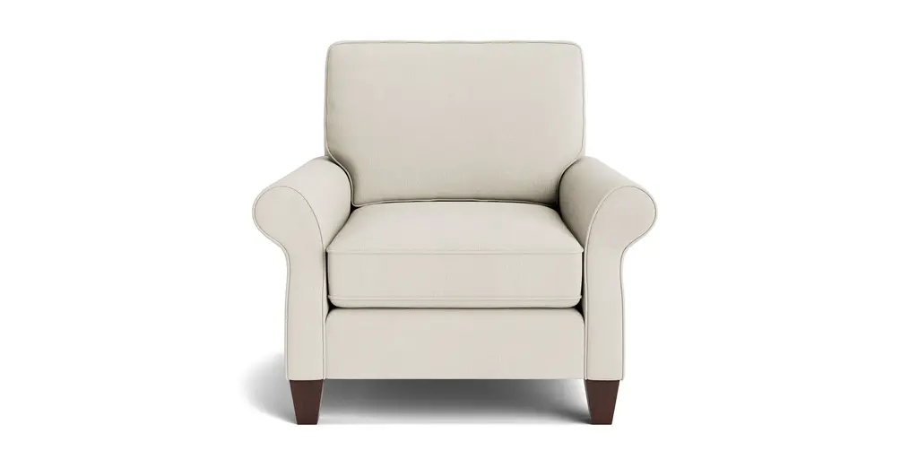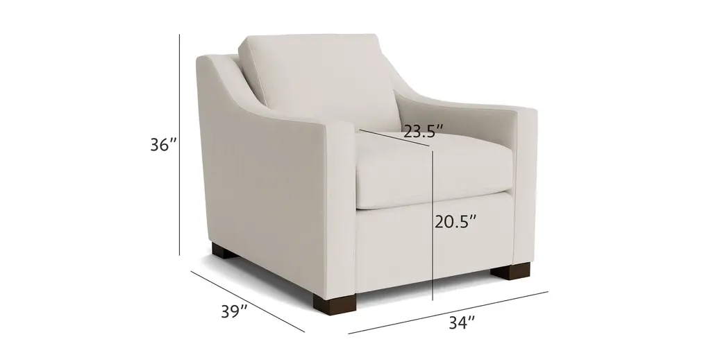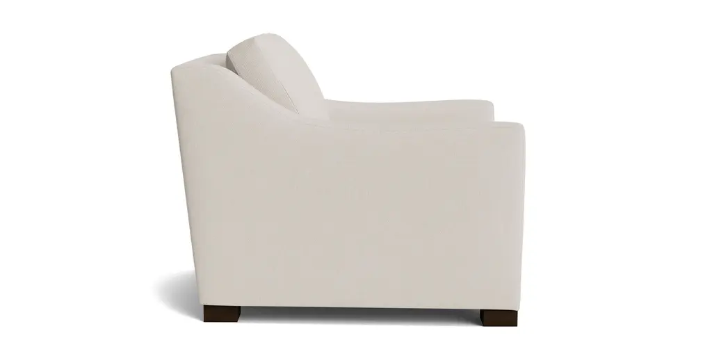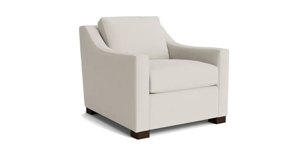Nothing says effortless cool like the Oliver Chair, with its low modern profile and wood block legs in a brindle finish. The sloped arms make it a beauty from every angle. Loose boxed cushions with top-stitched seams create a streamlined look that is easily restored with a quick fluff of the cushion.