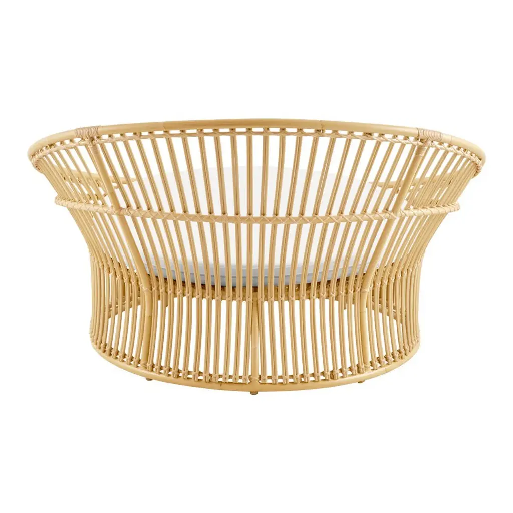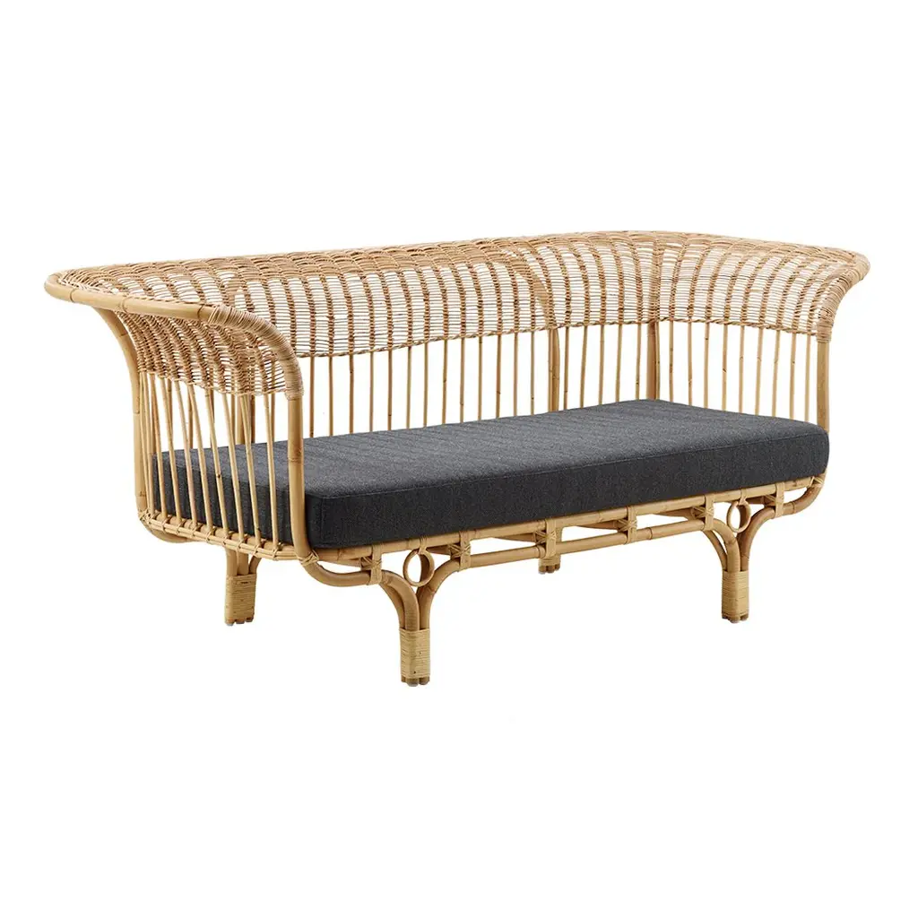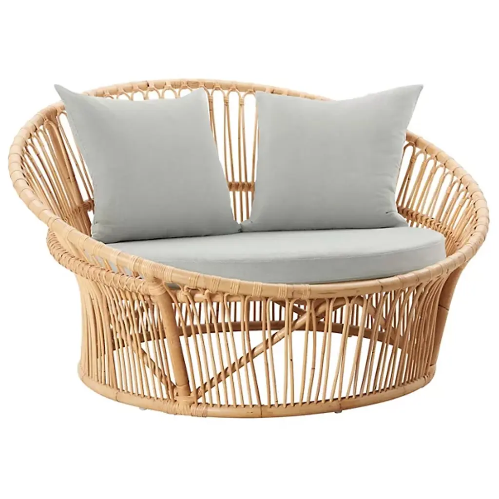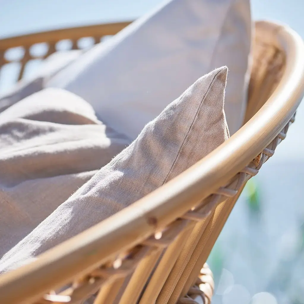 Olympia lounge chair, also called "love nest" is fine and elegant. Olympia is designed by Sika-Design and is made in alu-rattan and ArtFibre materials. Alu-Rattan is weatherproof powder coated aluminum and ArtFibre is artificial fibers made of maintenance-free polyethylene that can withstand the sun's UV radiation. Due to the weatherproof materials, the furniture can withstand being outside throughout the year without maintenance. The fine bindings in the seat and back are made on a frame of aluminum of skilled wicker workers. Olympia contributes a naturally beautiful element in any outdoor environment. With the fine open wicker and the beautiful curved back, the love nest has a very elegant and aesthetic expression. The Olympia is a Danish design, made by Sika-Design. You can choose to buy a cushion in optional fabric, manufactured in our Danish sewing room. We also offer to sew cushions in the customer's own fabric, please contact us to get enlightened about material use.
