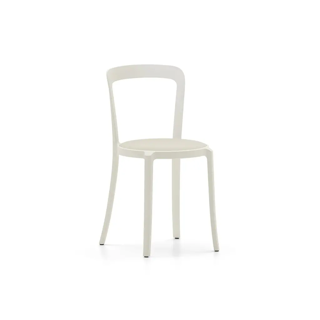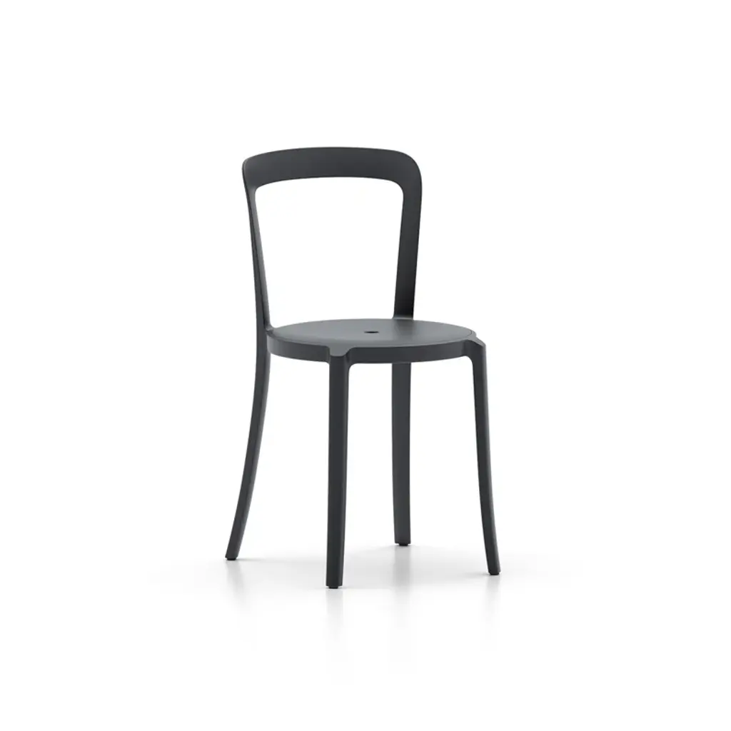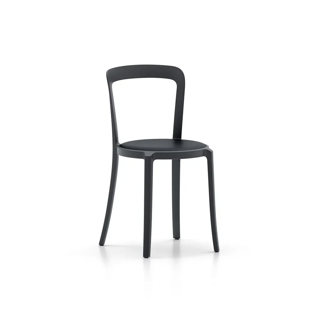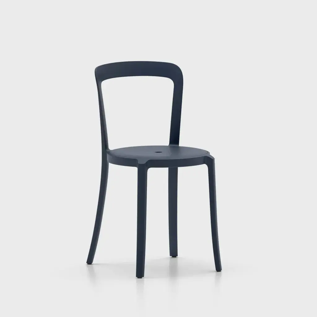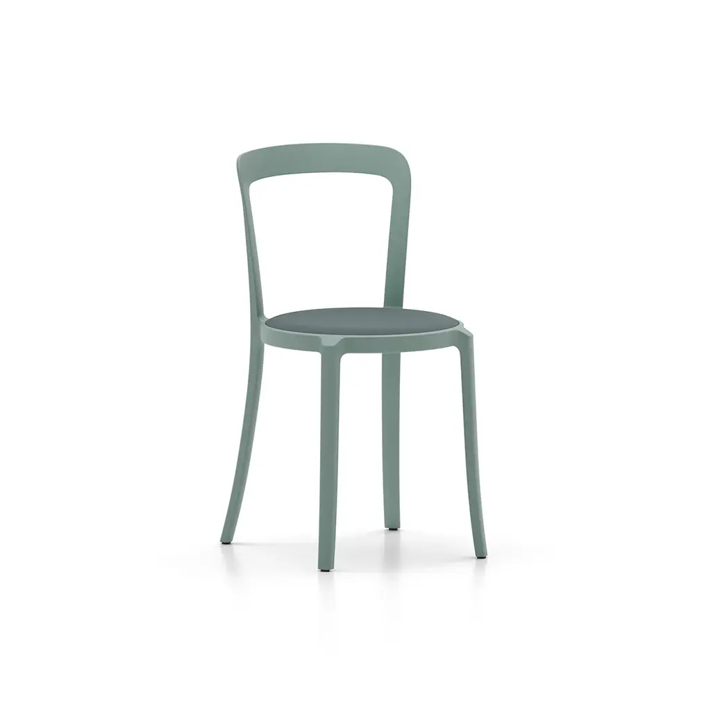 The On & On Collection breaks new ground with a circular way of thinking, combining longevity of design, durability, and the use of recycled materials that can be recycled again – on and on. The upholstered seat is offered in Kvadrat Steelcut Trio fabric, Spinneybeck leather or Kvadrat Haku polyurethane textile, all matching the chair frames in six appealing and timeless colors. Made and remade in USA from recycled plastic (rPET). Recycled plastic and plywood seats in ash and oak are also offered as well as COM/COL - please contact us for further upholstery options. Chairs stack 6 high.