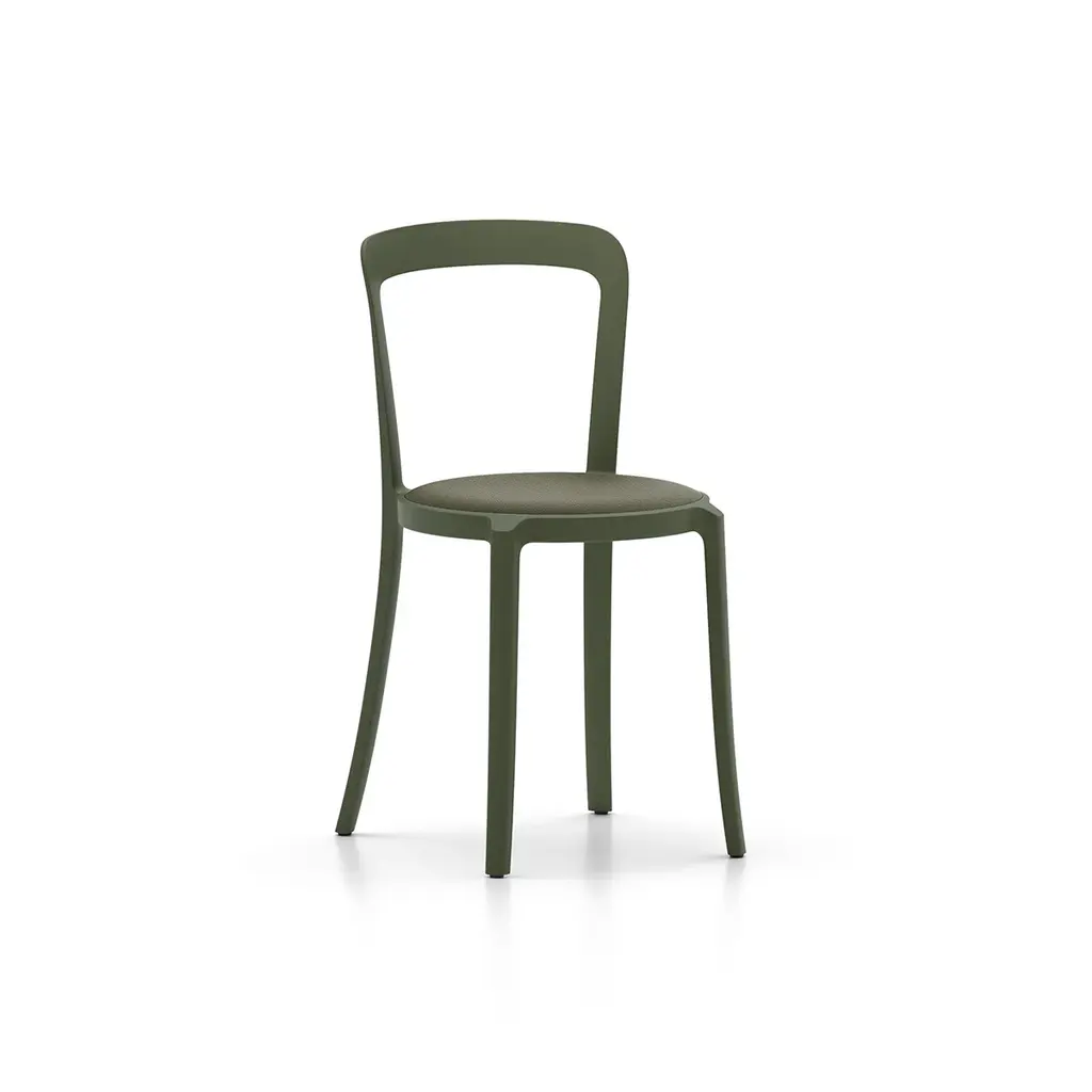 The On & On Collection breaks new ground with a circular way of thinking, combining longevity of design, durability, and the use of recycled materials that can be recycled again – on and on. The upholstered seat is offered in Kvadrat Steelcut Trio fabric, Spinneybeck leather or Kvadrat Haku polyurethane textile, all matching the chair frames in six appealing and timeless colors. Made and remade in USA from recycled plastic (rPET). Recycled plastic and plywood seats in ash and oak are also offered as well as COM/COL - please contact us for further upholstery options. Chairs stack 6 high.