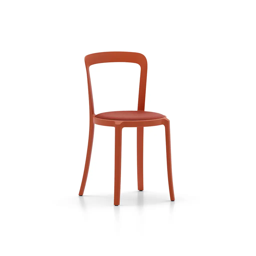 The On & On Collection breaks new ground with a circular way of thinking, combining longevity of design, durability, and the use of recycled materials that can be recycled again – on and on. The upholstered seat is offered in Kvadrat Steelcut Trio fabric, Spinneybeck leather or Kvadrat Haku polyurethane textile, all matching the chair frames in six appealing and timeless colors. Made and remade in USA from recycled plastic (rPET). Recycled plastic and plywood seats in ash and oak are also offered as well as COM/COL - please contact us for further upholstery options. Chairs stack 6 high.