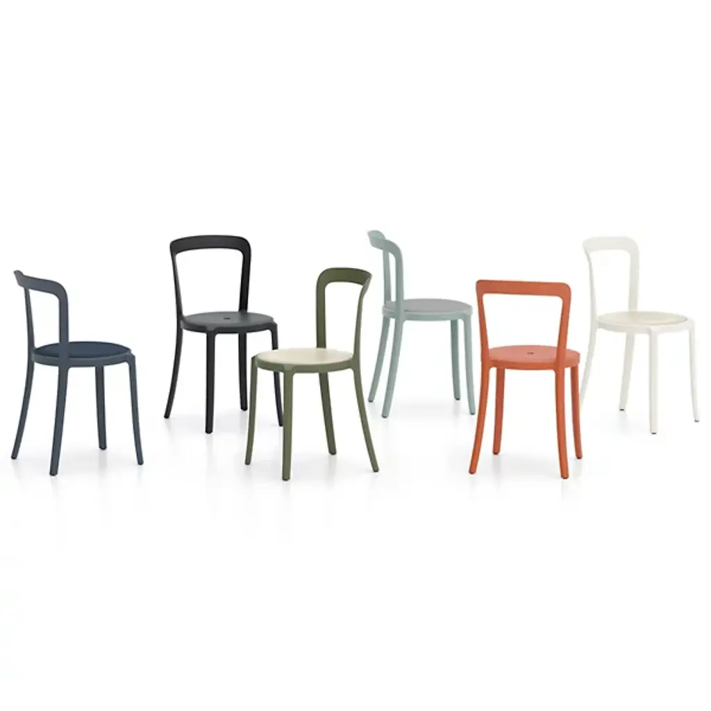 The On & On Stacking Chair by Emeco is a practical piece with a purposeful build from London-based Barber & Osgerby that is a thoughtful combination of design, durability, and longevity. With a simple silhouette and lightweight design that allows it to both provide a comfortable seat and stack away neatly when not needed, this chair was created with a circular way of thinking – intended to be used again and again. Made and remade from recycled PET, the materials used to create this chair can be recycled again so they can go on and on and become something new.