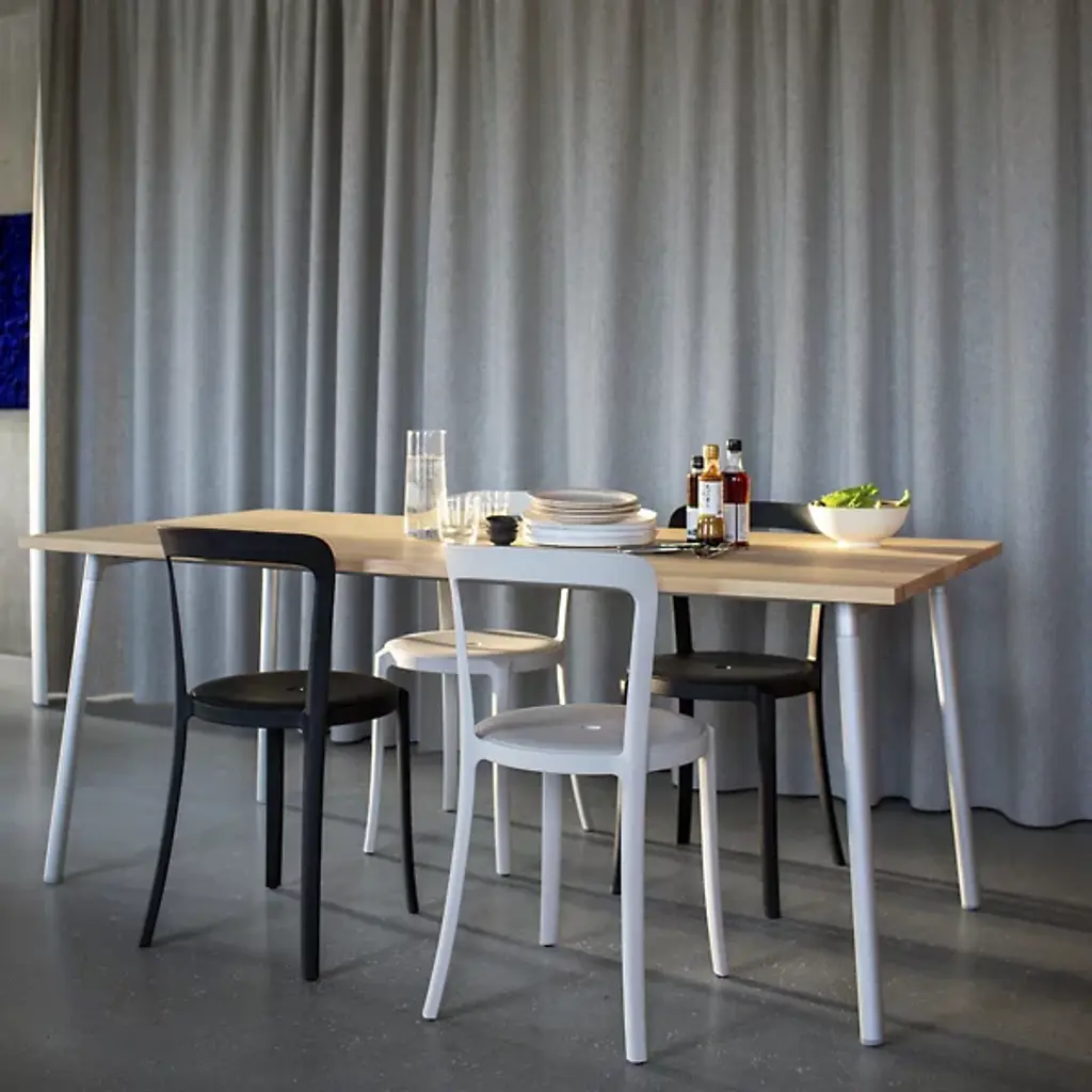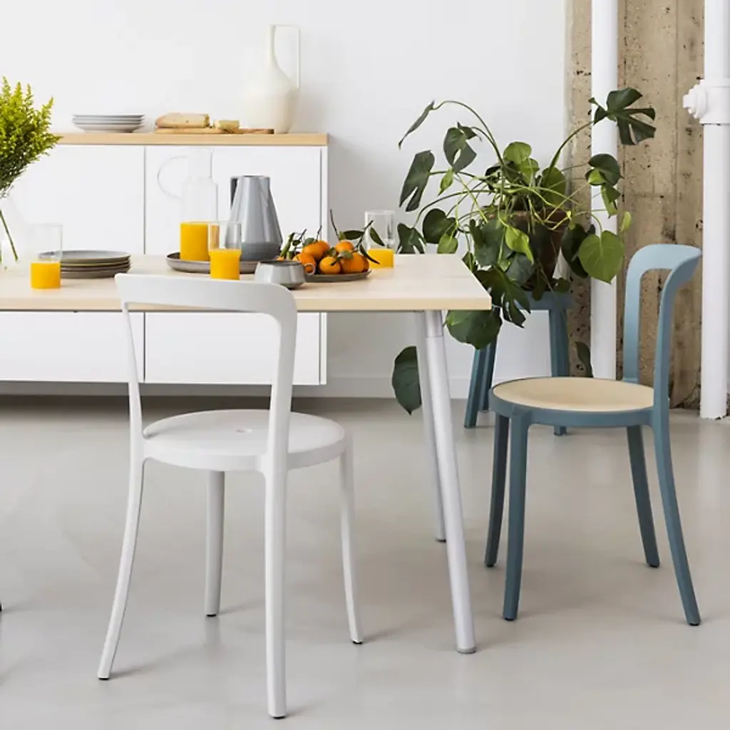 The On & On Stacking Chair, Plywood Seat by Emeco is a thoughtful combination of design, durability, and longevity from London-based Barber & Osgerby. Aiming to design pieces that are beautiful, purposeful, and that people want to live with forever, the foundation of this chair is made to be used again and again – on and on. This recycled PET body has a simple silhouette and lightweight design that allows it to provide a comfortable seat when needed and stack neatly in a circular way when not, making it an ideal choice for any space needing some extra seating.