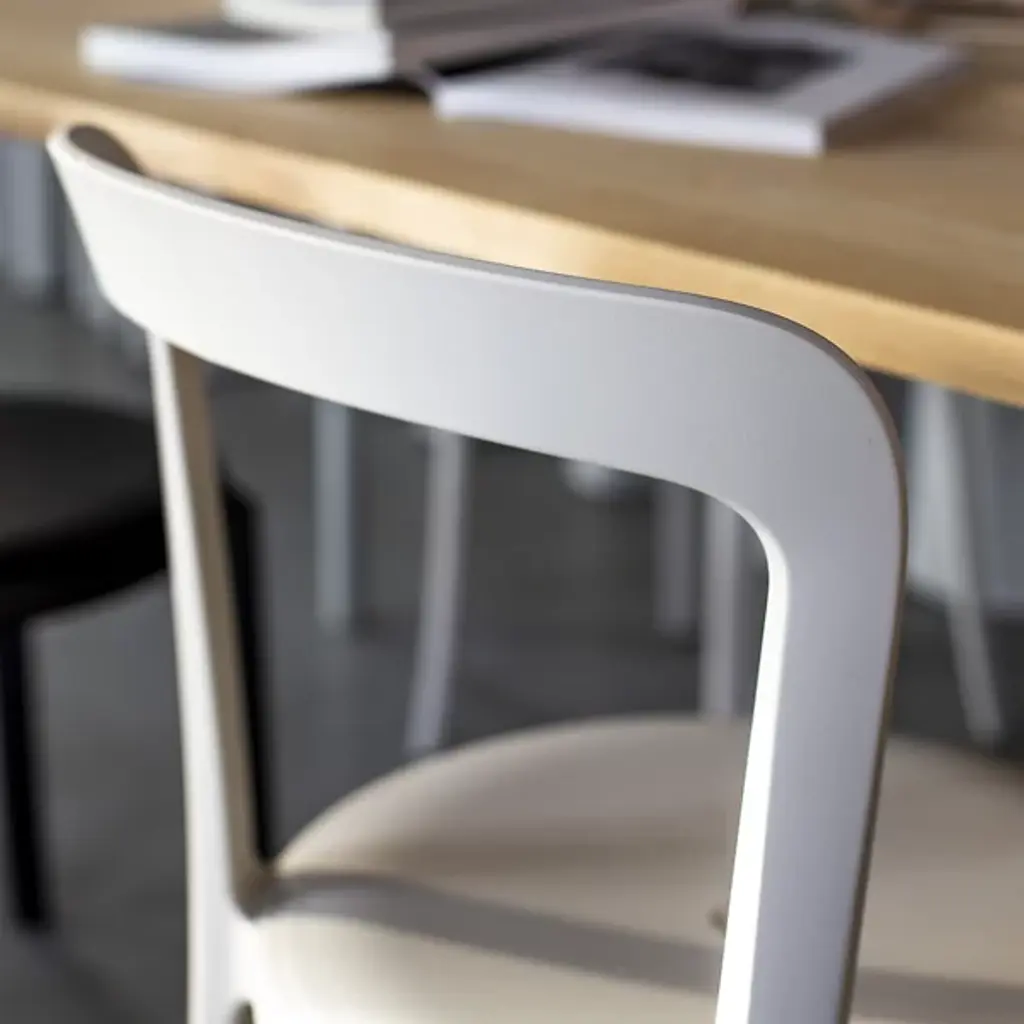 The On & On Stacking Chair, Plywood Seat by Emeco is a thoughtful combination of design, durability, and longevity from London-based Barber & Osgerby. Aiming to design pieces that are beautiful, purposeful, and that people want to live with forever, the foundation of this chair is made to be used again and again – on and on. This recycled PET body has a simple silhouette and lightweight design that allows it to provide a comfortable seat when needed and stack neatly in a circular way when not, making it an ideal choice for any space needing some extra seating.