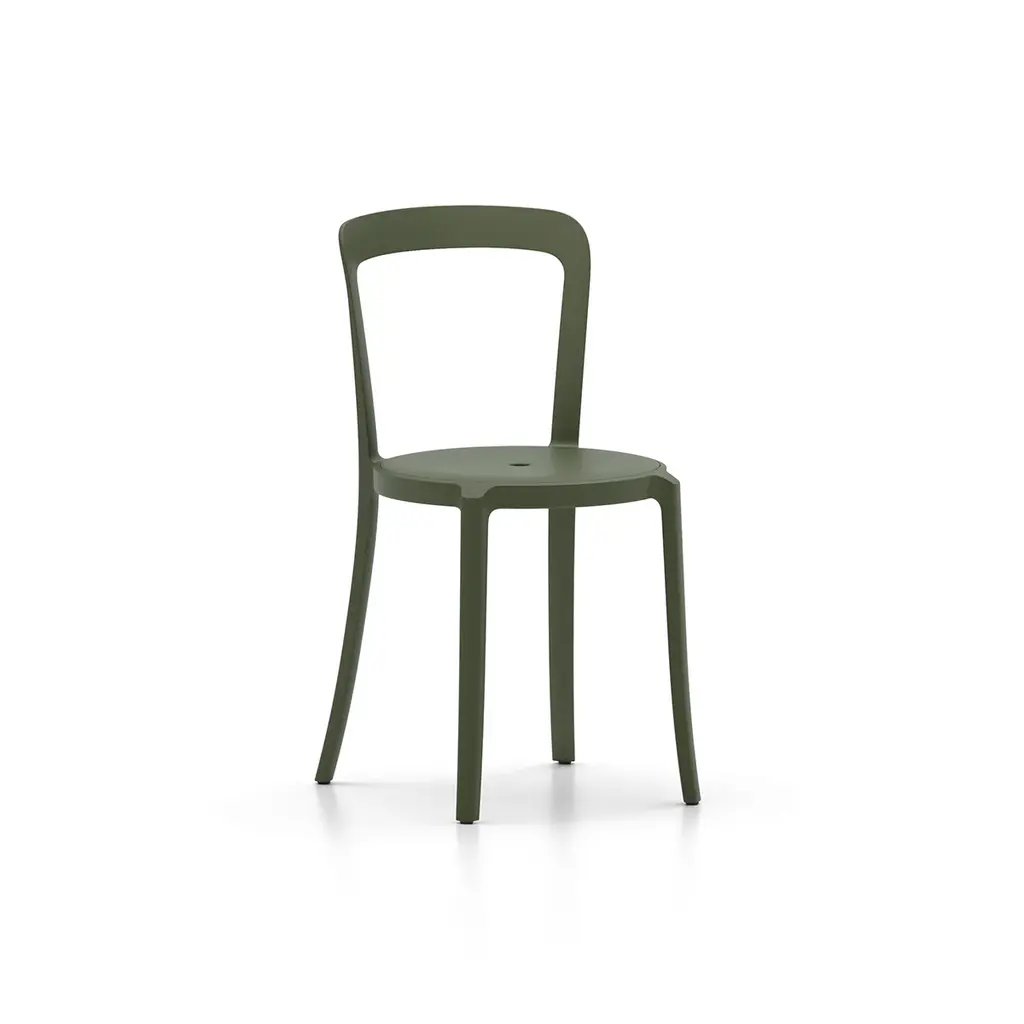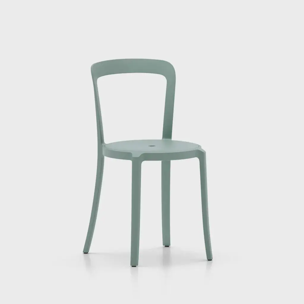Emeco and Barber & Osgerby introduce “On & On”, a collection of chairs and stools that breaks new ground with a circular way of thinking, combining longevity of design, durability, and the use of recycled materials that can be recycled again – on and on. The starting point for our collaboration was the next generation of a simple and timeless café chair, engineered for strength and designed specifically with recycling in mind. Together, Emeco and Barber & Osgerby have created a collection of chairs and stools that are physically and visually lightweight, yet extremely strong and durable, making them suitable for both demanding commercial environments and domestic use, indoors and out. Features