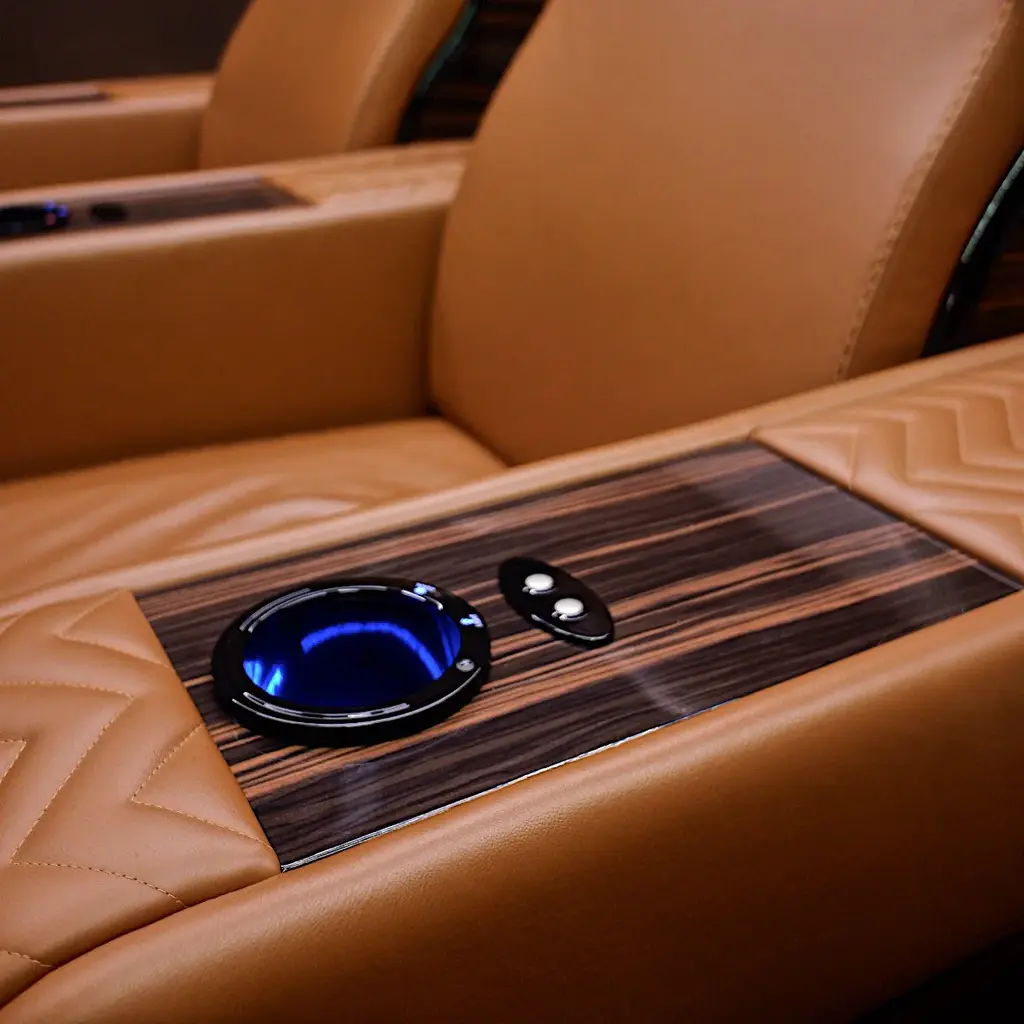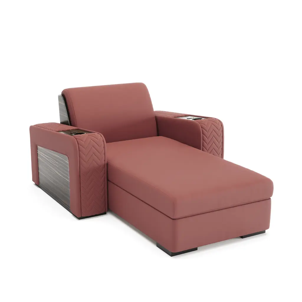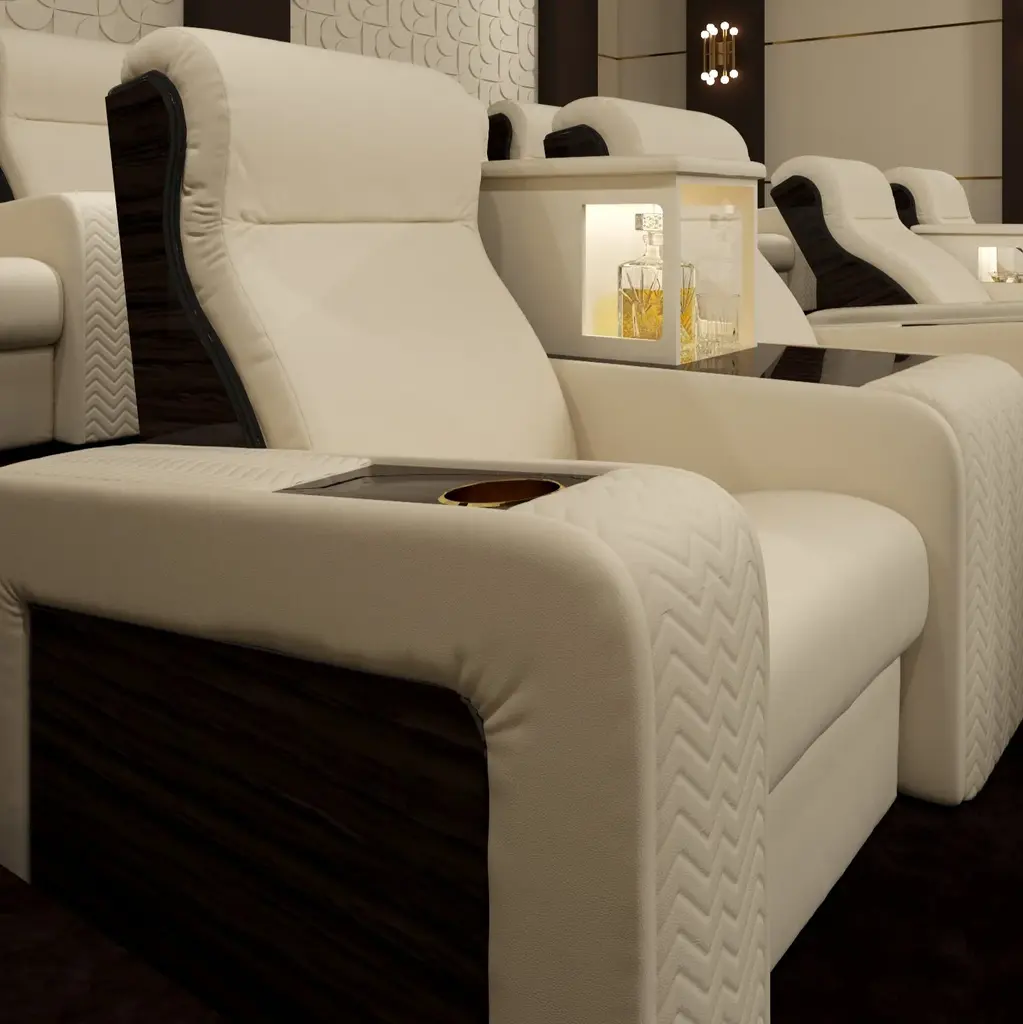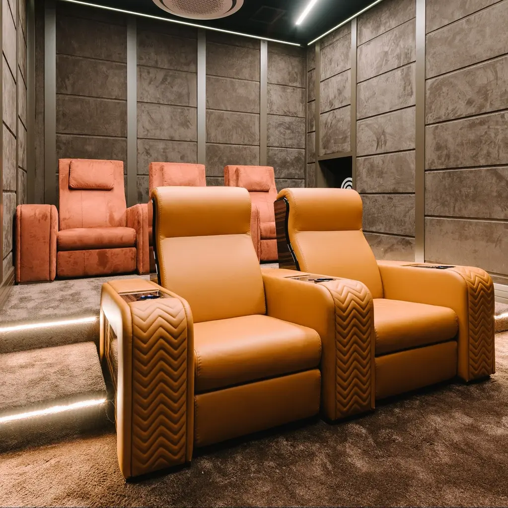 The definitive seat for a luxury home cinema, the Onassis Reclining Chair from Vismara is a masterpiece of Italian craftsmanship and high-impact design. Made in Italy, this contemporary chair features a back shell of glossy Makassar Ebony veneer, creating a stunning contrast with the soft leather upholstery. The armrests are detailed with a unique zig-zag quilted pattern. A fusion of sophisticated materials and ergonomic technology, it’s designed to bring the ultimate cinematic experience to your private residence. Highlights: