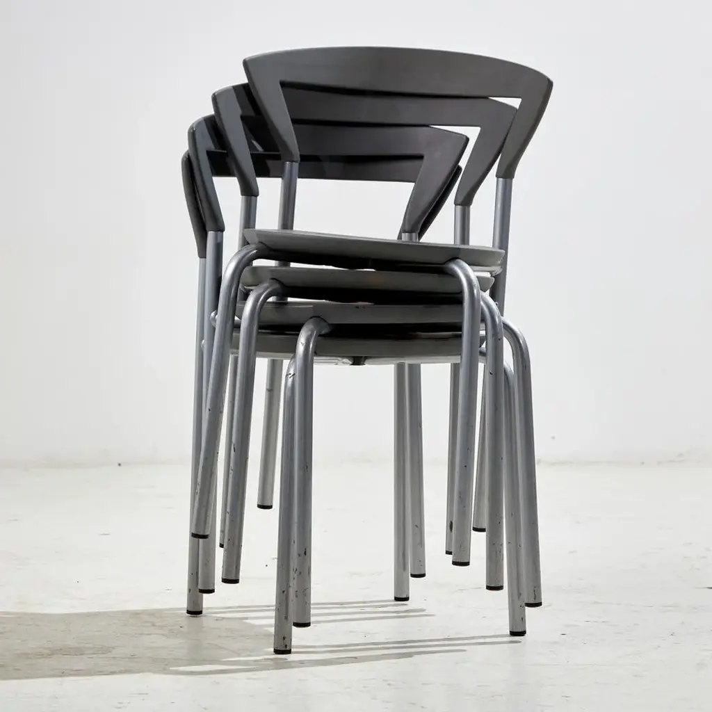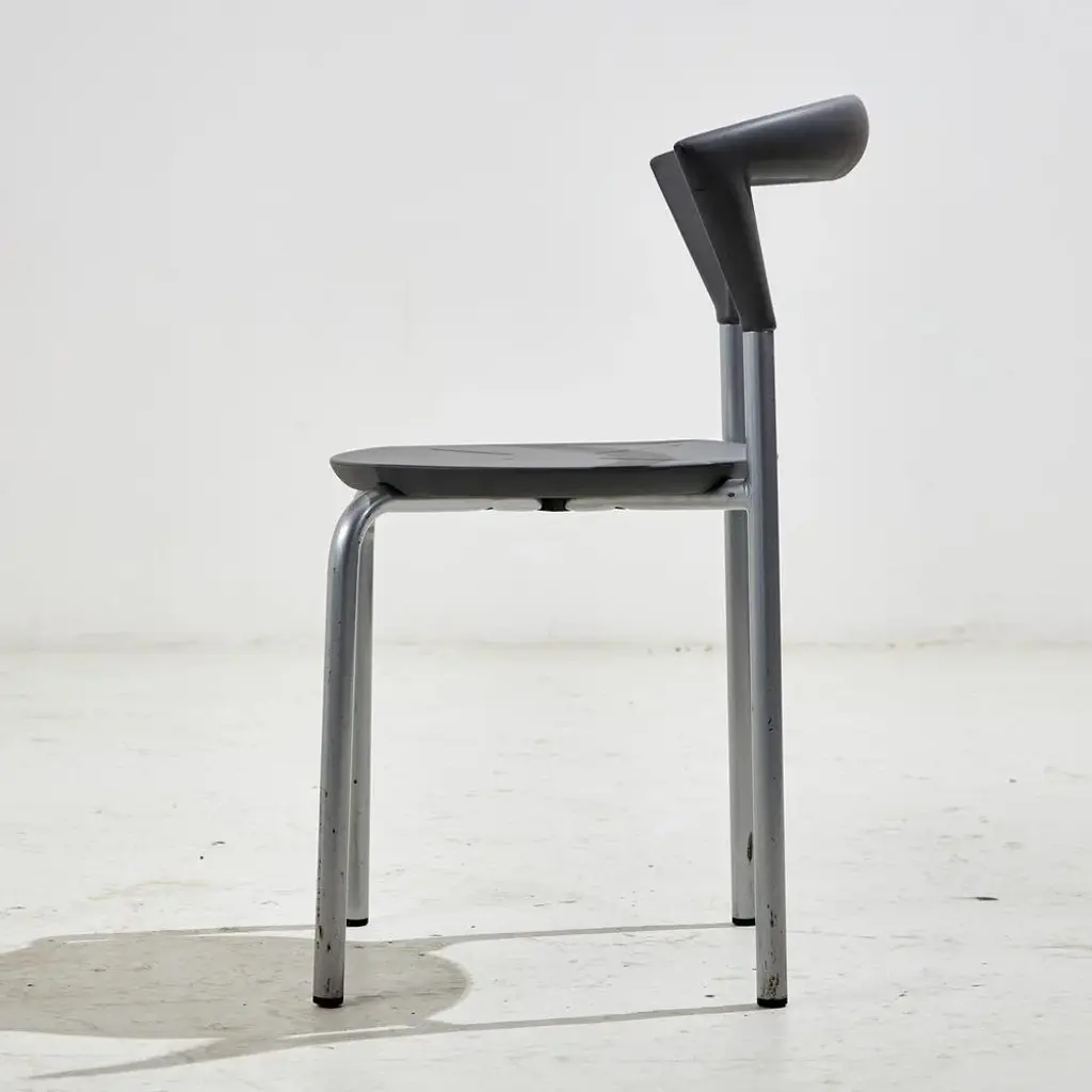 The ‘Opus’ chair was designed by Pelikan Design (Niels Gammelgaard and Lars Mathiesen) in the 1990s. The seat and backrest are made of rubber and the structure is made of steel. with some surface scratches, stains and wear on the steel and rubber parts.