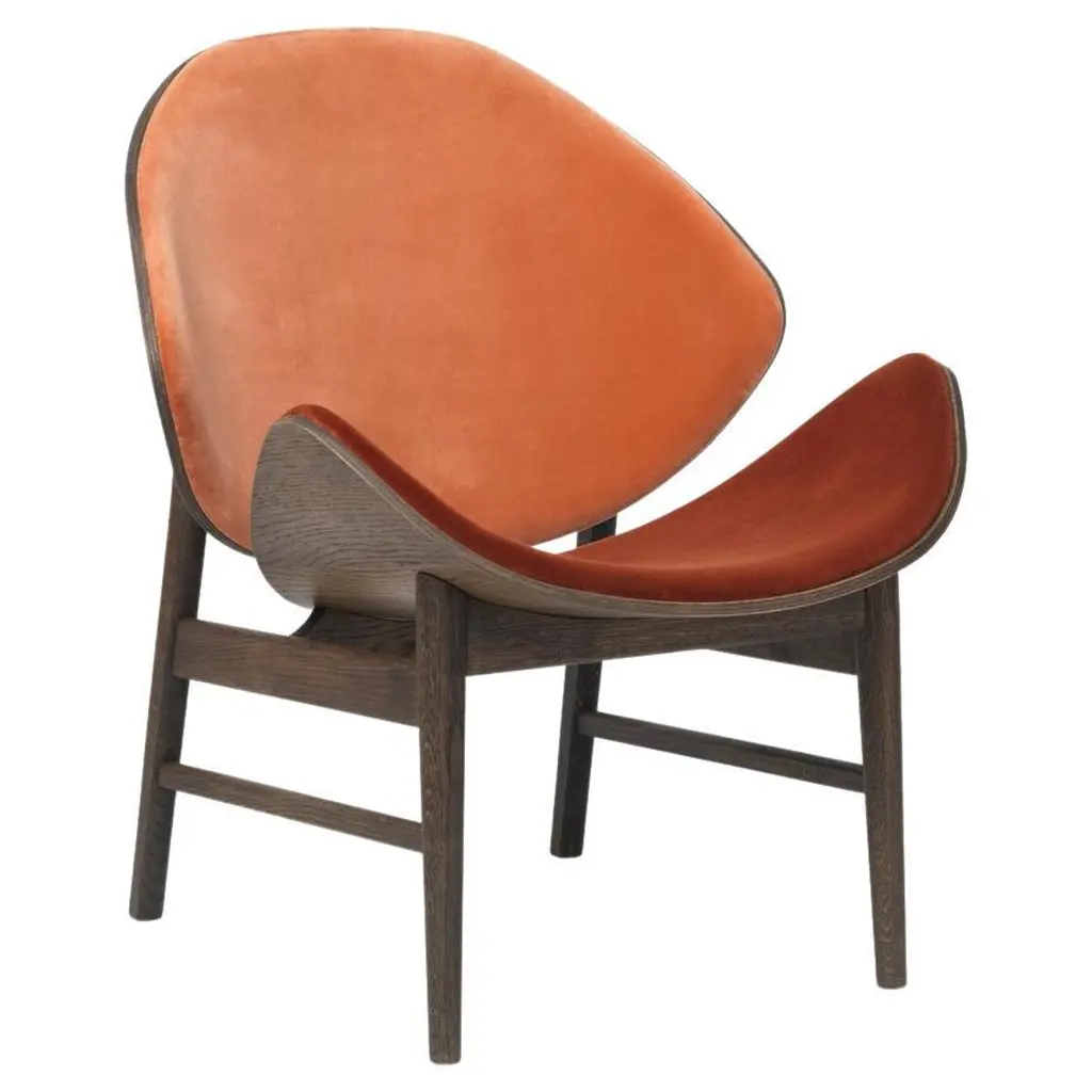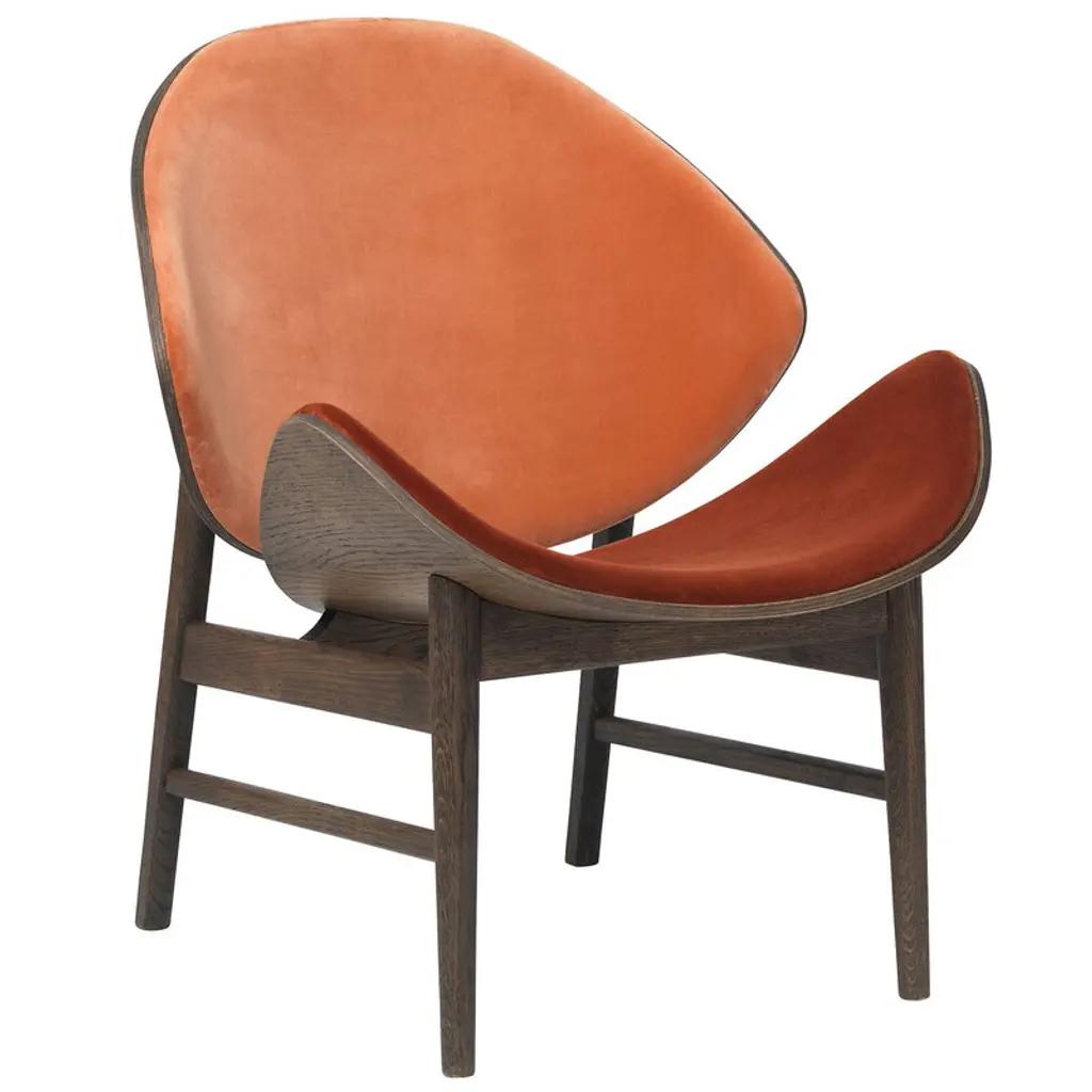 The orange chair mosaic smoked oak spicy brown camel by Warm NordicDimensions: D64 x W71 x H 78 cmMaterial: Smoked solid oak base, Veneer seat and back, Textile or leather upholsteryWeight: 9 kgAlso available in different colours, materials and finishes. This light, elegant chair, The Orange was designed in the 1950s by the acclaimed Danish architect, Hans Olsen. Thanks to its classic expression, The Orange chair will complement either a contemporary or more timeless interior as an effortless addition to the existing furniture in the home. Hans Olsen's The Orange chair is one of the earliest known shell chairs and acquired its name because of its characteristic back and seat, which are reminiscent of orange peel. Reflecting both the era's experiments with colour and the architect's own playful attitude to design, this upholstered shell chair is also available in a two-tone version.Warm Nordic is an ambitious design brand anchored in Nordic design history and with a timeless, aesthetic style that inspires you to appreciate the little things in life. The company is the result of several years’ intense work on developing a new design brand with design history, quality and personality at its core. Warm Nordic boasts a colourful and charming universe of furniture, lamps and accessories full of personality. Our designs encapsulate the Nordic spirit, which in its essence is timeless, inclusive and warm.