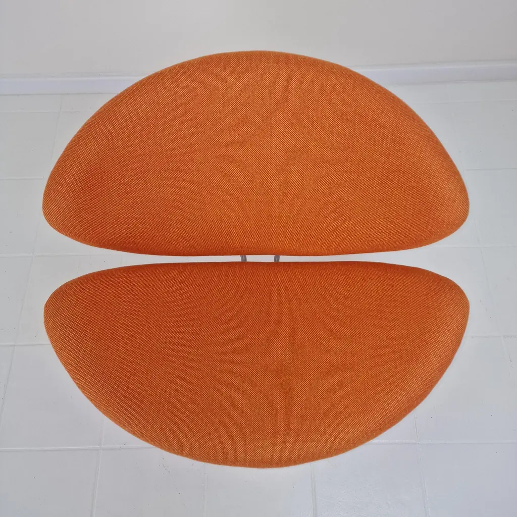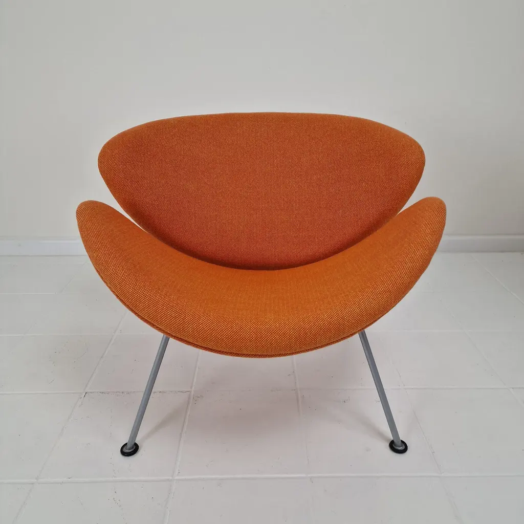 The famous Artifort orange slice chair by Pierre Paulin, designed in the 60s. This original chair is produced in the 90's. It is a cute and very comfortable chair. There are 2 available. Both chairs are just restored with new fabric and new foam. They are reupholstered with very nice wool fabric (color orange). These amazing chairs are in perfect condition. Both chairs are originally marked under the seat. This piece has an attribution mark, I am sure that it is completely authentic and take full responsibility for any authenticity issues arising from misattribution