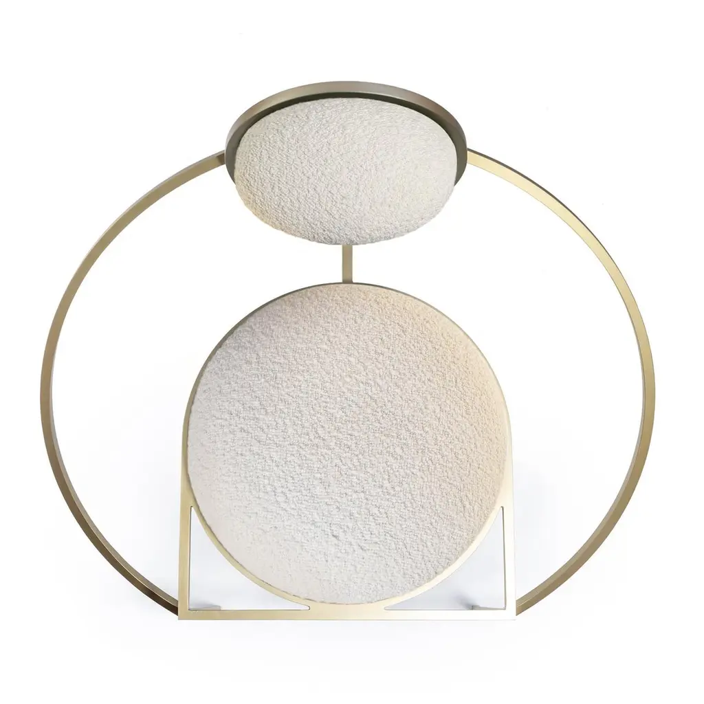 Orbit Chair, Brushed Brass And Cream Boucle Wool Fabric, By Lara Bohinc