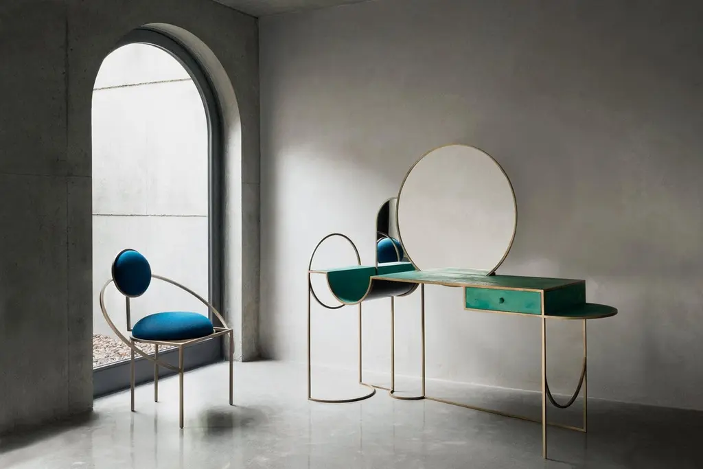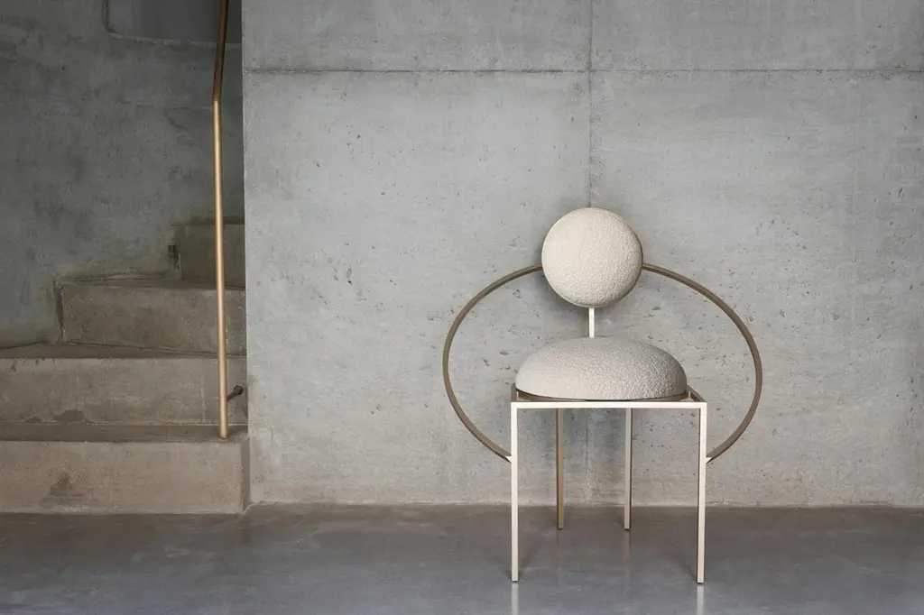 With orbit chairs Lara Bohinc develops her stellar themes, finding inspiration in planetary and lunar orbits, whose gravitationally curved trajectories drive the lines and shapes of the chairs. Constructed from thin square rods, the chairs are elegant, minimal and delicate.This chair is made in brushed brass and Dedar boucle cream wool and viscose fabric. You can also choose the frame to be made in oxidized brushed brass or in powder coated steel. Please note that even though brass is protected by clear varnish, it may still oxidize over the years which is a natural ageing process. The chair is made by hand and small imperfections are part of its charm.Each piece of furniture is individually numbered and comes with a signed “Certificate of Authenticity” to prove that it is Bohinc Studio original.Material: Brushed brass and boucle wool and viscose Dedar fabric.Dimensions: Width 80cm, height 88cm, depth 55cmWeight: 16kg.