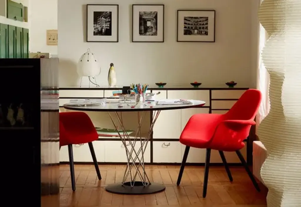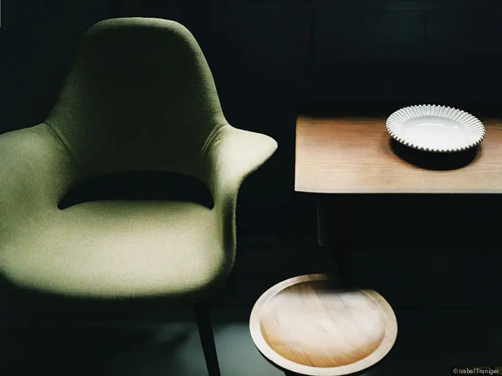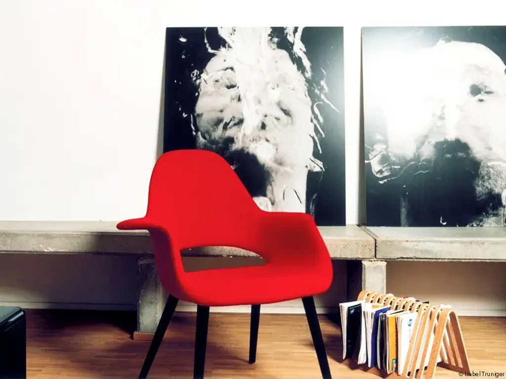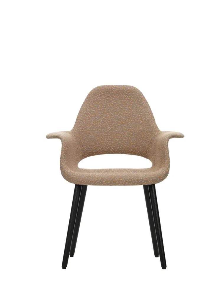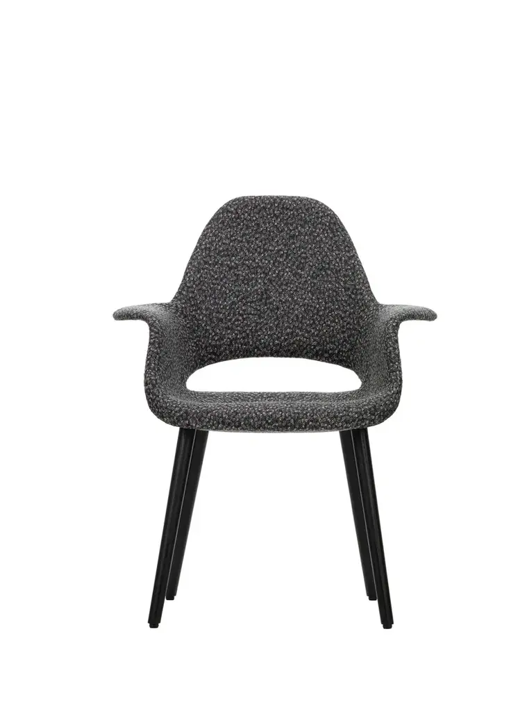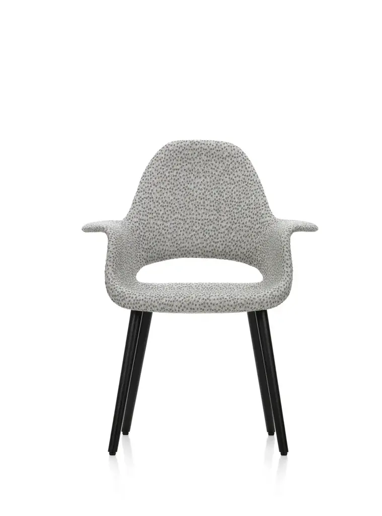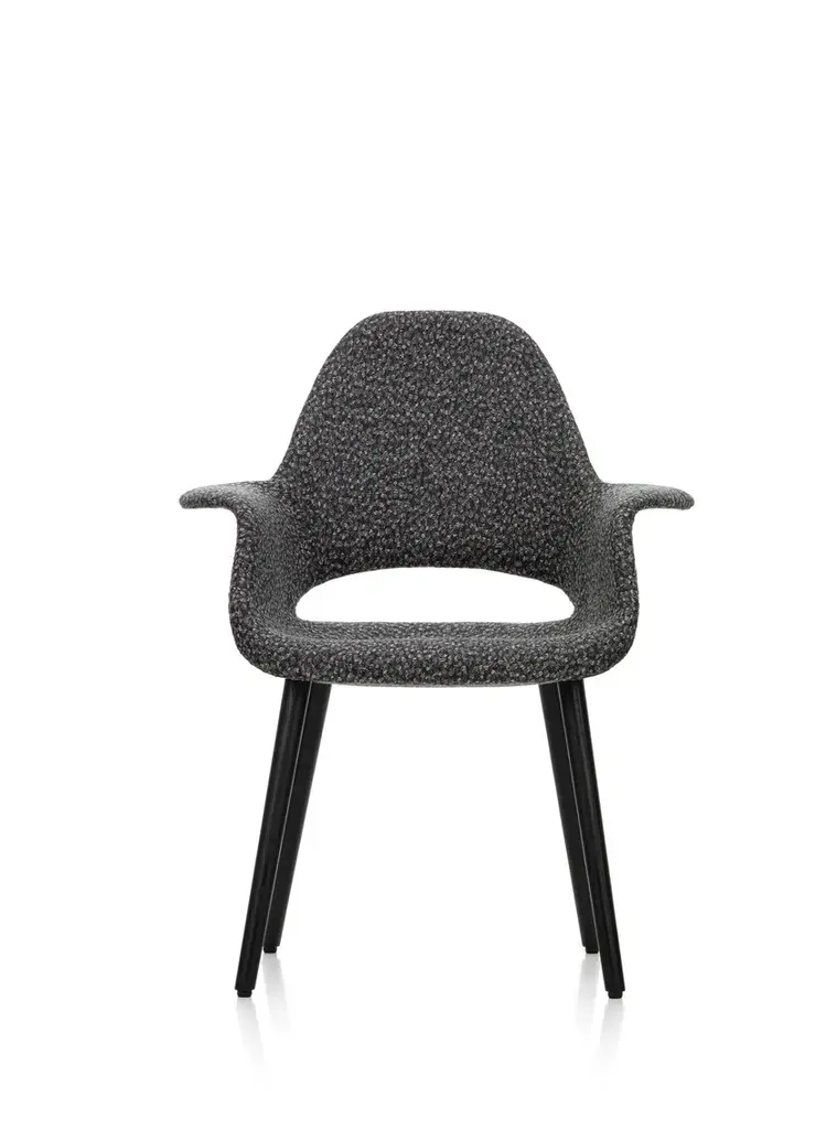 The Organic Chair – a small and comfortable reading chair – was developed in several versions for the 1940 ‘Organic Design in Home Furnishings’ competition organised by the Museum of Modern Art in New York. With its sculptural shapes, the design was ahead of the times. But due to the absence of suitable manufacturing techniques, the armchair never went into production. Not until 1950 did it become possible to manufacture and market organically shaped seat shells in large quantities, as exemplified by Charles and Ray Eames‘s famous Plastic Armchair or Saarinen‘s Tulip Chair.The Organic Chair is also available in a version with an extended backrest and longer, wider armrests – the Organic Highback armchair. The Organic Conference version can be used as table seating.The Organic Conference chair, which can be combined with a wide variety of conference and meeting tables, offers supreme seating comfort thanks to its biomorphically shaped shell. Designed by Charles Eames and Eero Saarinen in 1940 as part of their entry for ‚Organic Design in Home Furnishings‘, a competition organised by the Museum of Modern Art in New York, this chair has long been regarded as an iconic classic.Materials:- Seat shell: laminated.- Upholstery: polyurethane foam with fabric cover.- Legs: black ash or natural oak.- Glides: fitted with plastic glides for carpet, felt glides for hard floors additionally included.