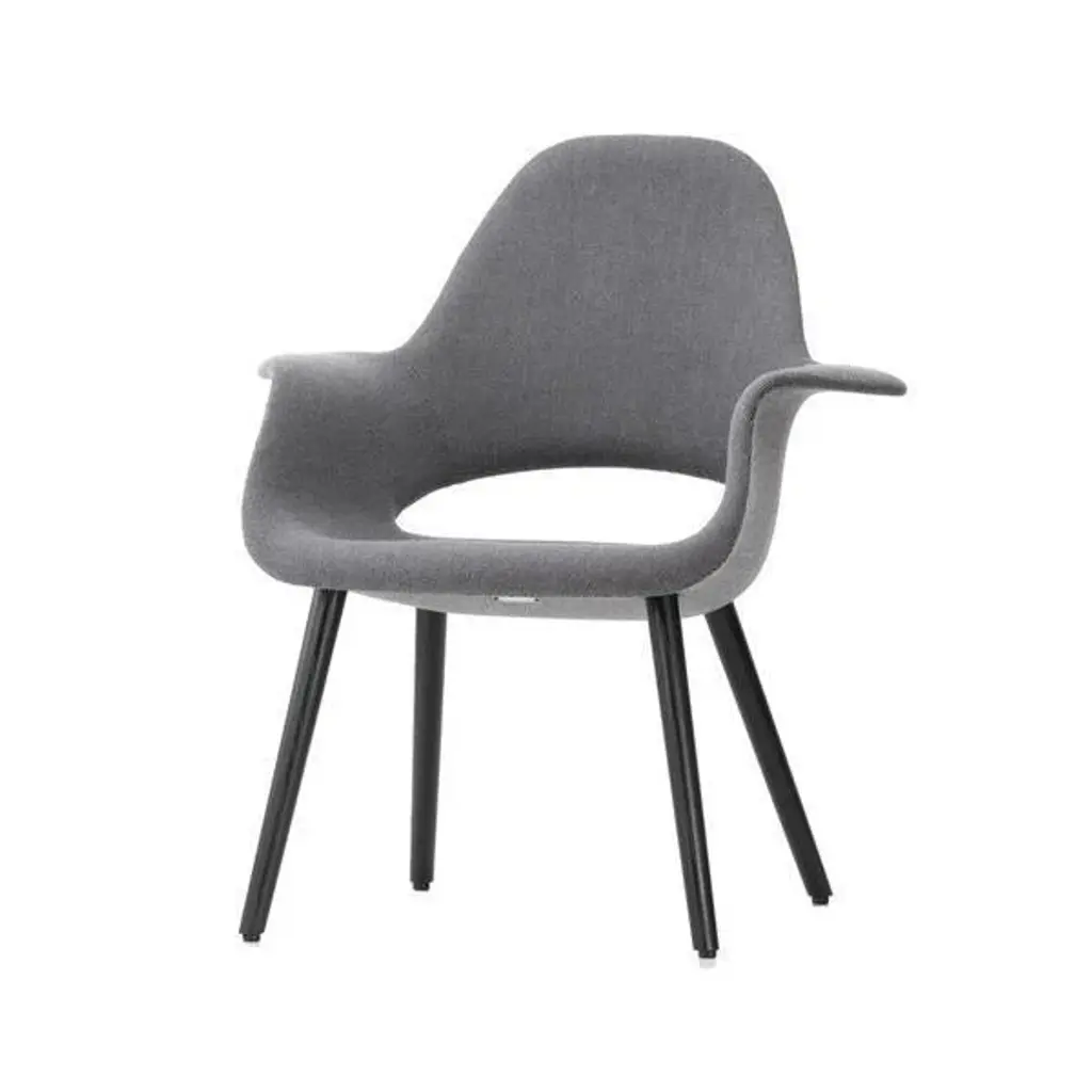 The Organic Chair – a small and comfortable reading chair – was developed in several versions for the 1940 ‘Organic Design in Home Furnishings' competition organised by the Museum of Modern Art in New York. With its sculptural shapes, the design was ahead of the times. But due to the absence of suitable manufacturing techniques, the armchair never went into production. Not until 1950 did it become possible to manufacture and market organically shaped seat shells in large quantities, as exemplified by Charles and Ray Eames's famous Plastic Armchair or Saarinen's Tulip Chair.