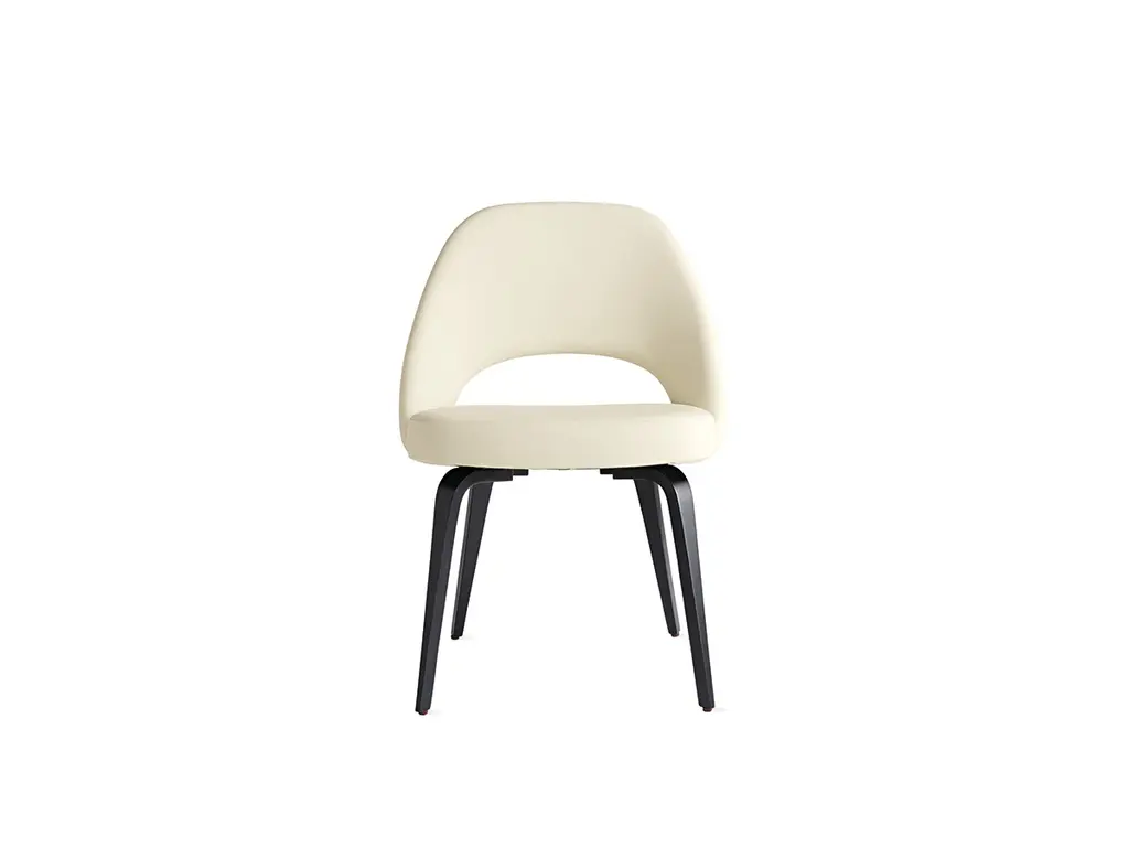 The Organic Chair – a small and comfortable reading chair – was developed in several versions for the 1940 ‘Organic Design in Home Furnishings’ competition organised by the Museum of Modern Art in New York. With its sculptural shapes, the design was ahead of the times. But due to the absence of suitable manufacturing techniques, the armchair never went into production. Not until 1950 did it become possible to manufacture and market organically shaped seat shells in large quantities, as exemplified by Charles and Ray Eames‘s famous Plastic Armchair or Saarinen‘s Tulip Chair.The Organic Chair is also available in a version with an extended backrest and longer, wider armrests – the Organic Highback armchair. The Organic Conference version can be used as table seating.The Organic Conference chair, which can be combined with a wide variety of conference and meeting tables, offers supreme seating comfort thanks to its biomorphically shaped shell. Designed by Charles Eames and Eero Saarinen in 1940 as part of their entry for ‚Organic Design in Home Furnishings‘, a competition organised by the Museum of Modern Art in New York, this chair has long been regarded as an iconic classic.Materials:- Seat shell: laminated.- Upholstery: polyurethane foam with fabric cover.- Legs: black ash or natural oak.- Glides: fitted with plastic glides for carpet, felt glides for hard floors additionally included.
