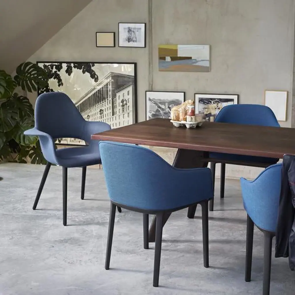The Organic Chair – a small and comfortable reading chair – was developed in several versions for the 1940 ‘Organic Design in Home Furnishings' competition organised by the Museum of Modern Art in New York. With its sculptural shapes, the design was ahead of the times. But due to the absence of suitable manufacturing techniques, the armchair never went into production. Not until 1950 did it become possible to manufacture and market organically shaped seat shells in large quantities, as exemplified by Charles and Ray Eames's famous Plastic Armchair or Saarinen's Tulip Chair.