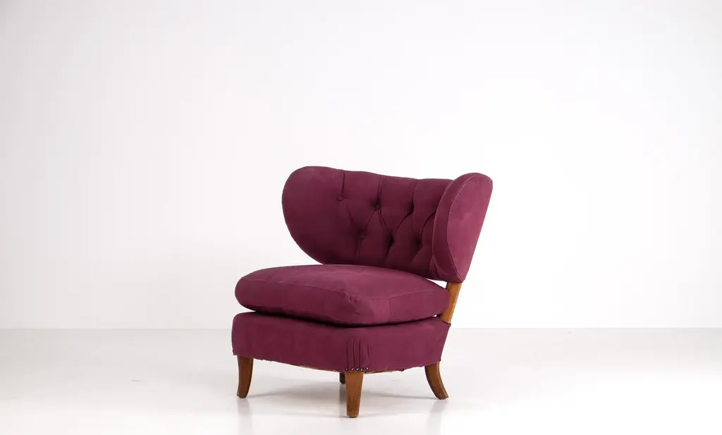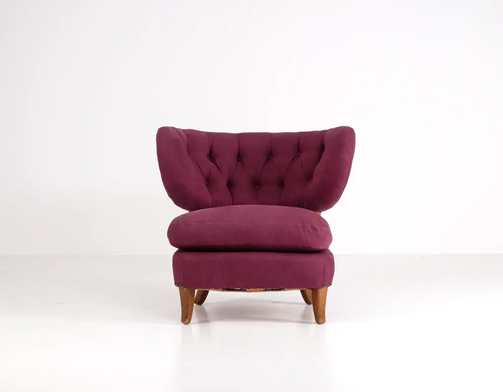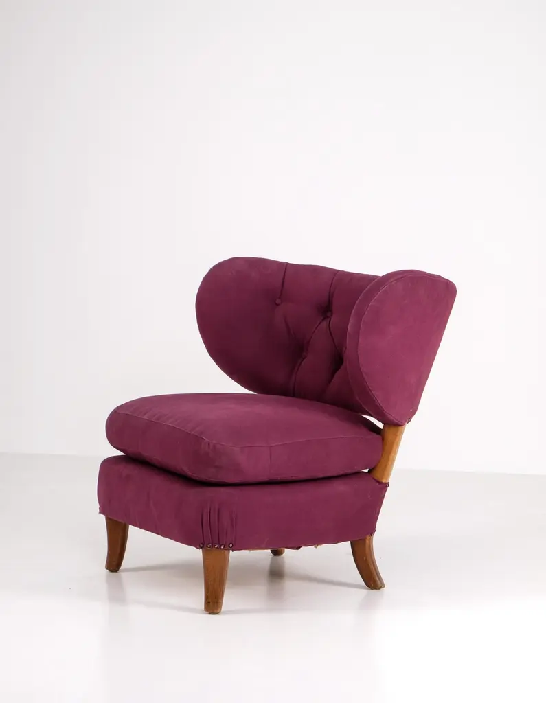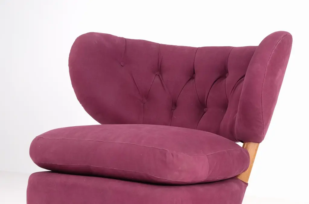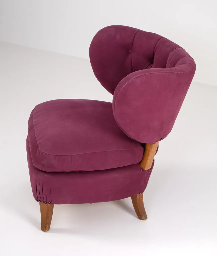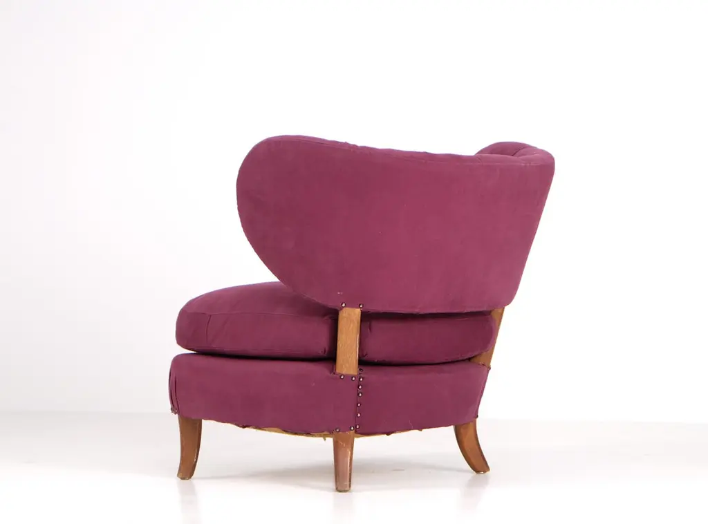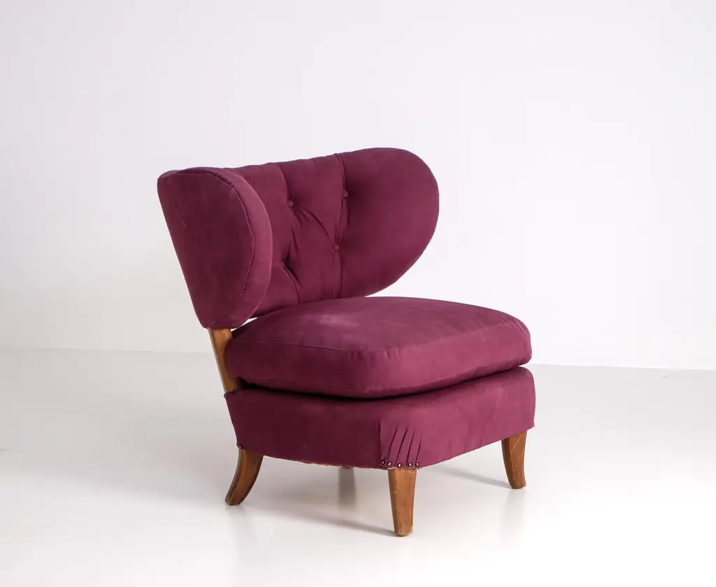 Velvet easy chair designed by Otto Schulz, produced by Boet, Sweden, 1940s.