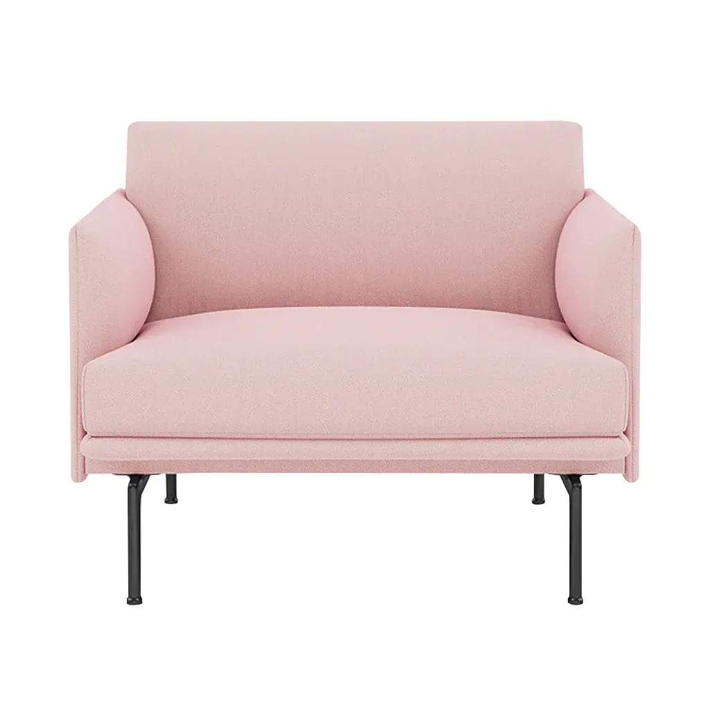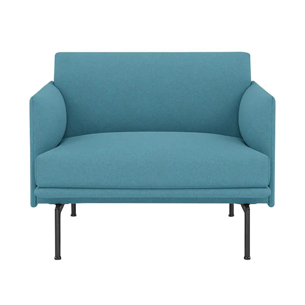 Clean and elegant on the outside with a deep seat and soft cushioning on its inside, Outline Chair adds a selection of stocked upholstery for expedited delivery. Generously proportioned, Anderssen & Voll’s design offers a choice of fine fabric or leather to pair with its slim metal base in black powder coat. Internally constructed with plywood and steel and layered with foam before the final upholstery, the cushions are hand sewn and filled with premium cold foam for resilient comfort.