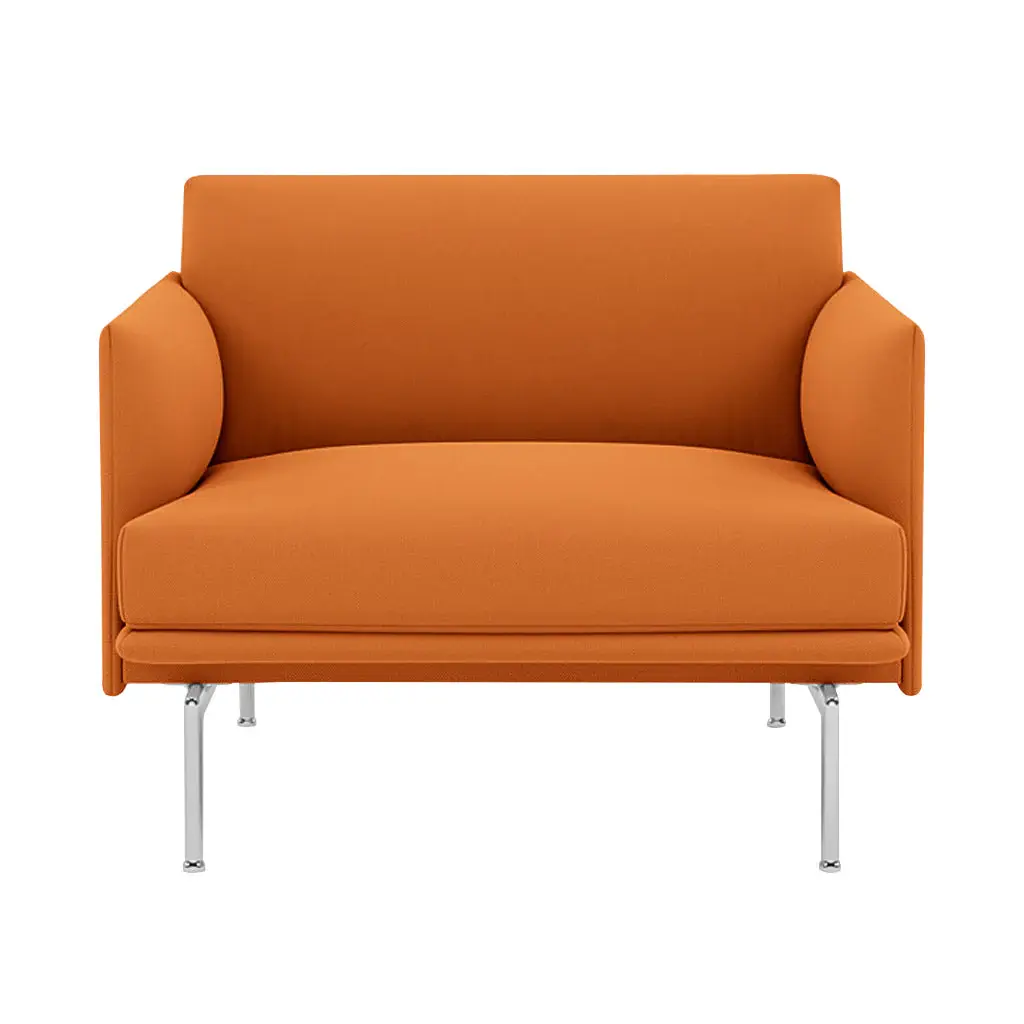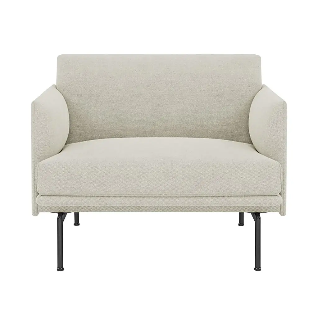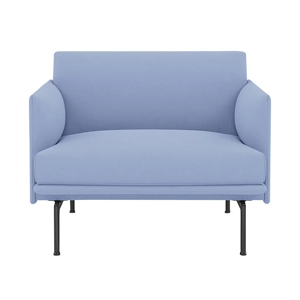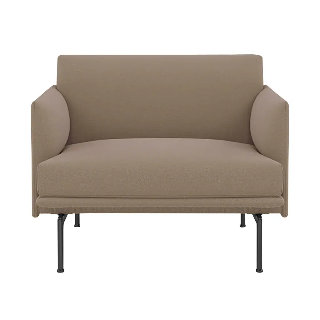 Clean and elegant on the outside with a deep seat and soft cushioning on its inside, Outline Chair adds a selection of stocked upholstery for expedited delivery. Generously proportioned, Anderssen & Voll’s design offers a choice of fine fabric or leather to pair with its slim metal base in black powder coat. Internally constructed with plywood and steel and layered with foam before the final upholstery, the cushions are hand sewn and filled with premium cold foam for resilient comfort.
