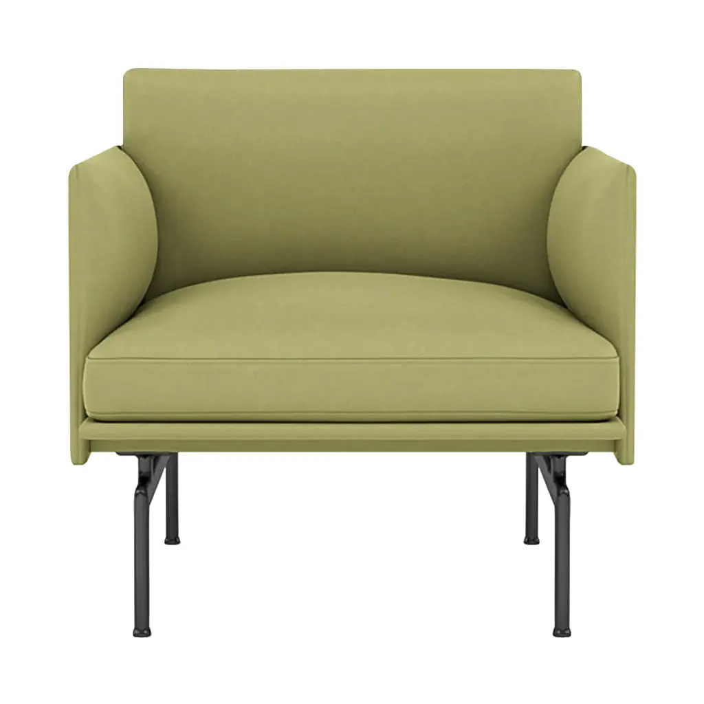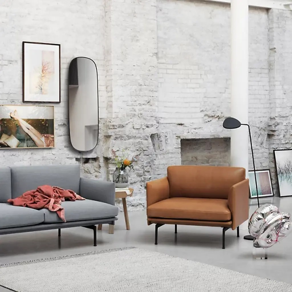 Bring designer quality to your decorative arrangement with the Outline Chair by Muuto. This chair is composed of fine leather and features curved, distended arms for your support while at rest. Two pairs of aluminum legs are connected by supporting beams to facilitate this chair’s proper balancing. Molded cushions are filled with foam for your comfort. The Outline Chair is designed by Anderssen & Voll, an artistic duo who produce furniture of the highest quality that celebrates clean lines and elegant form.