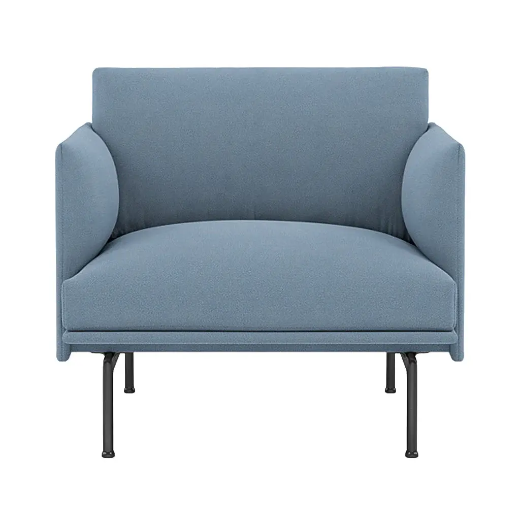 Relinquishing none of the deeply cushioned comfort of Muuto's Outline series, Studio Chair slims down to suit more compact living spaces. With the same signature lookÑsharply curved and plumped-up upholstery offset by the crisp structure and slender powder-coated aluminum legsÑ from acclaimed Nordic design duo Anderssen & Voll. Clad in fine textiles or silken leather, it's a luxurious rendering of flawless hand-craftsmanship and essential Scandinavian design.