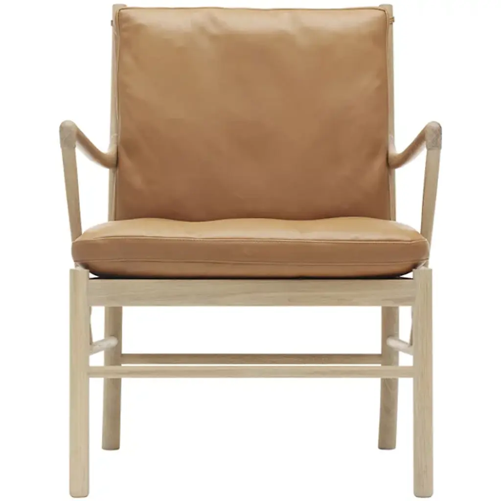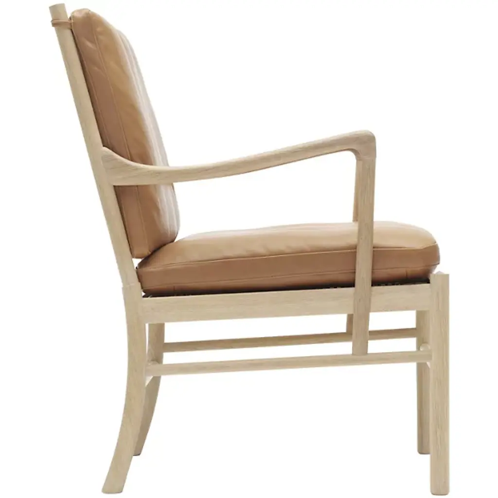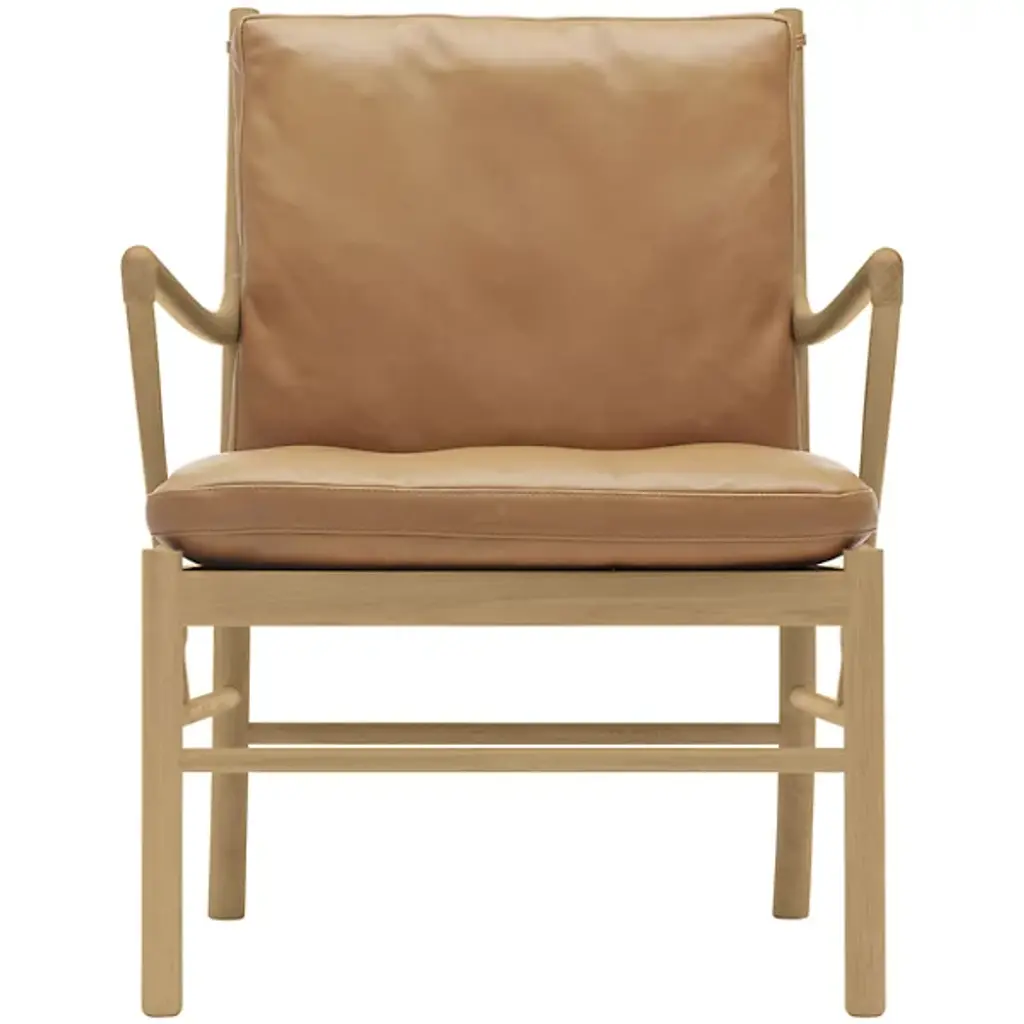 The Carl Hansen OW149 Colonial Chair is designer Ole Wanscher's most recognizable piece, and proves that fine craftsmanship never goes out of style. Designed by Wanscher in 1949, OW149 is inspired by 17th century English furniture. The solid wood frame is slim and curvy, which belies the chair's strength and stability. The distinctive arms curve upward to an elegant point and then straight down to join the rest of the frame.